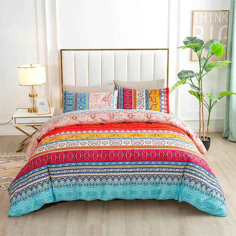 Red Flower Printing Pattern Super Soft King Queen Twin Single Multi-Size 3 Piece Bedding Quilt Duvet Cover Set