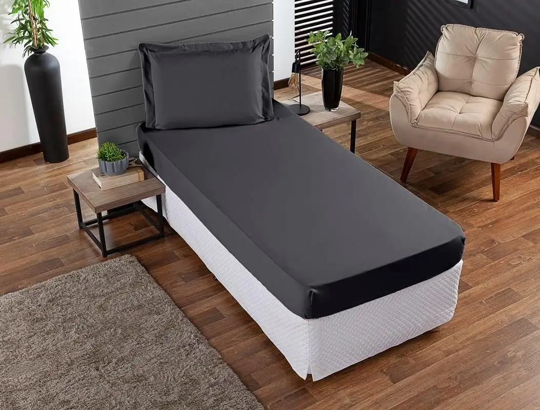 Single Fitted Sheet Set 100% Polyester 02 Pieces American Style Hem Anti-mite Anti-pilling Soft Touch All-Season