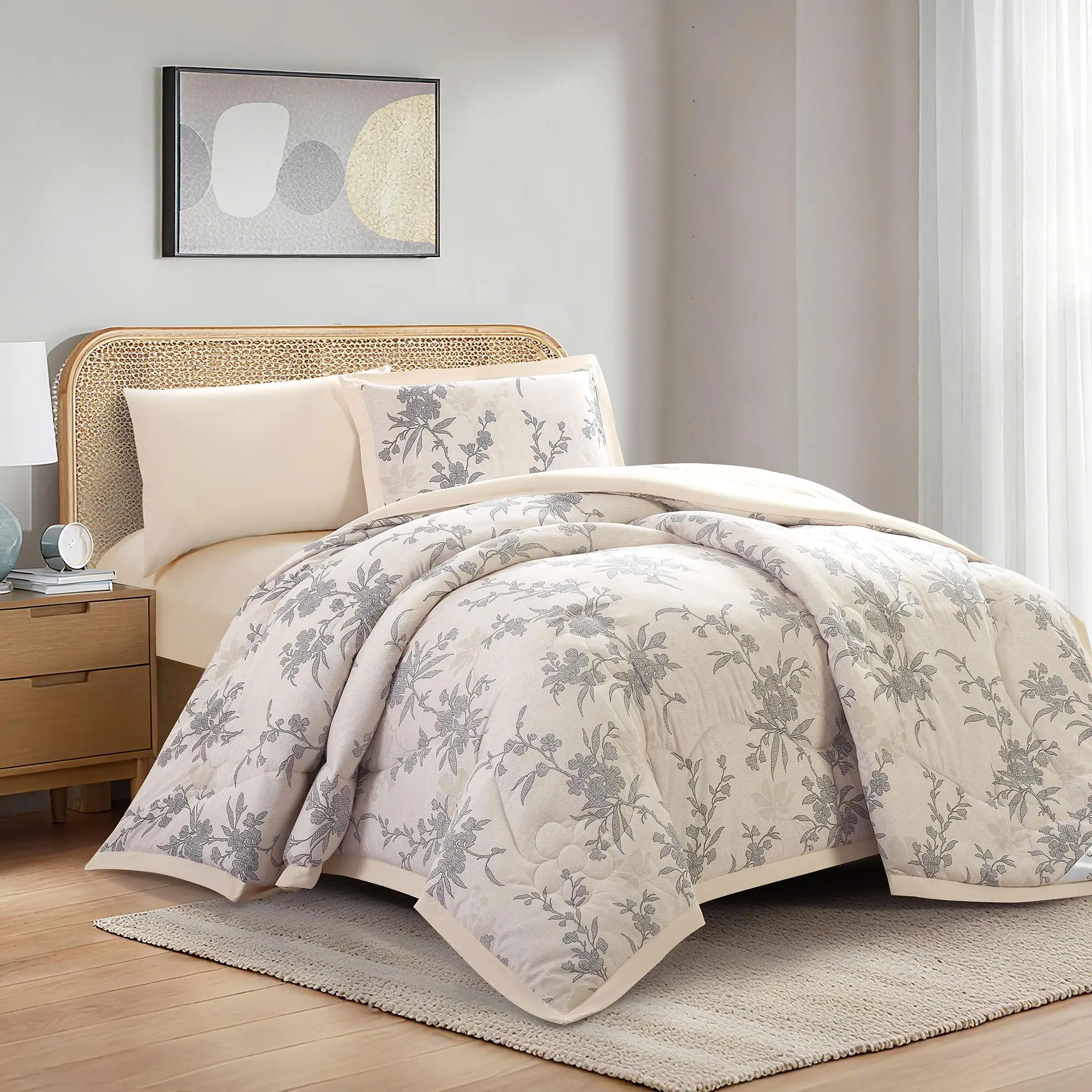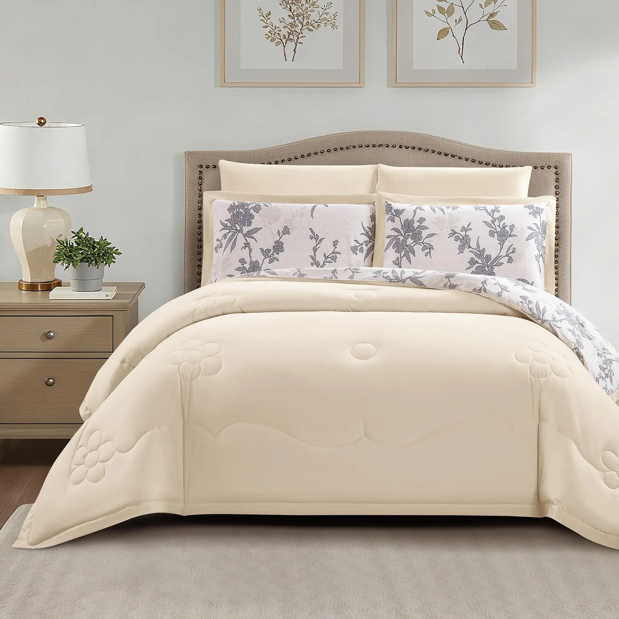 Brushed Soft Woven Twill Microfiber Polyester Custom Logo Printed Reversible Comforter Set 6pcs