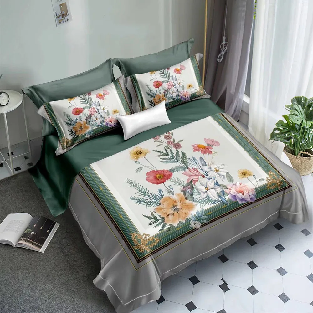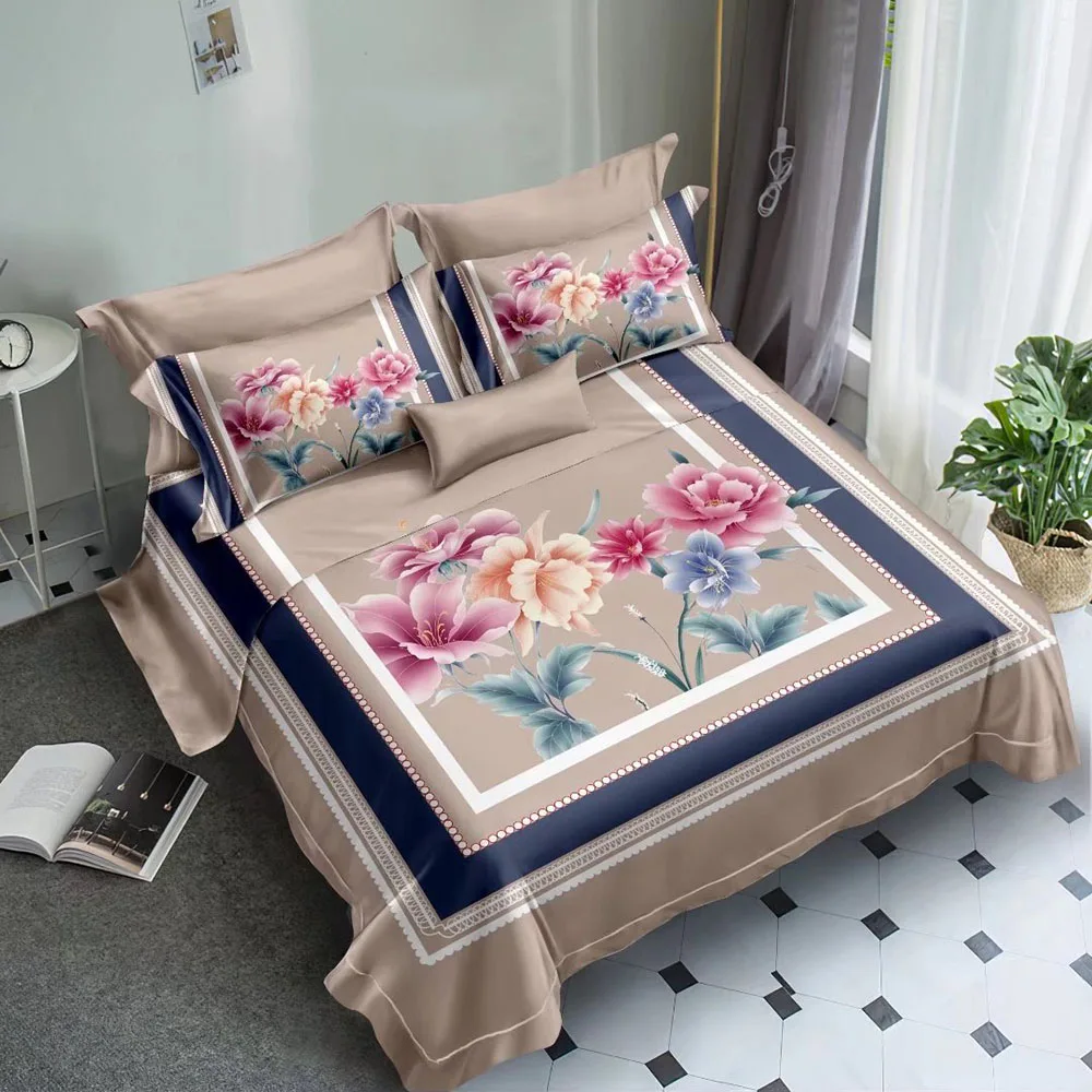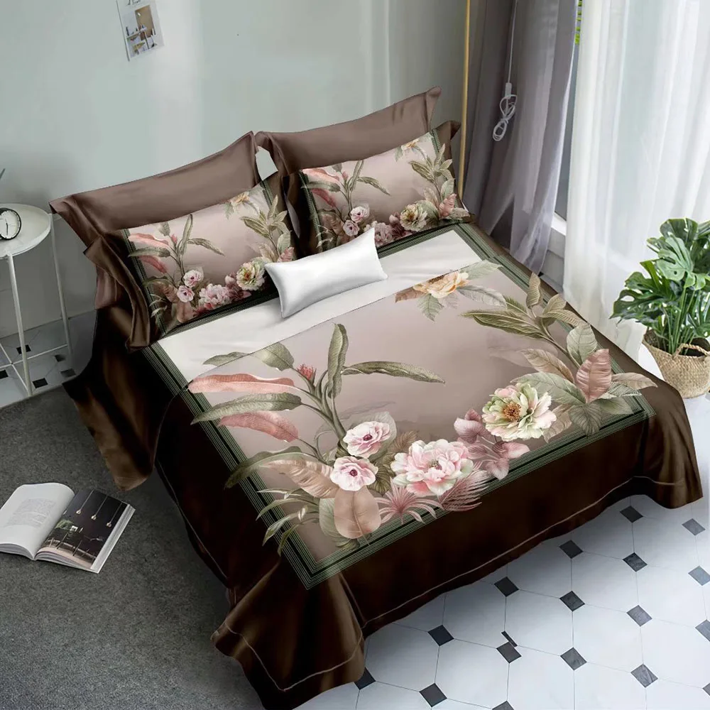 Print Flower Design Duvet Cover Sets Single Purple Luxury Polyester Microfiber Fabric for Bed Sheet Bedding Set