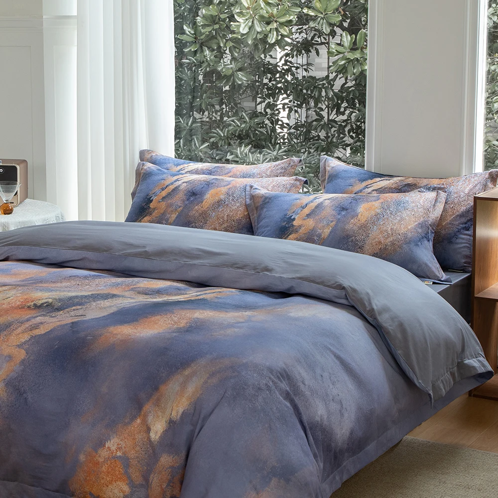 Custom Digital Print Fabric Cotton Bedding Painting Style Duvet Cover Sets Bed Sheet Set
