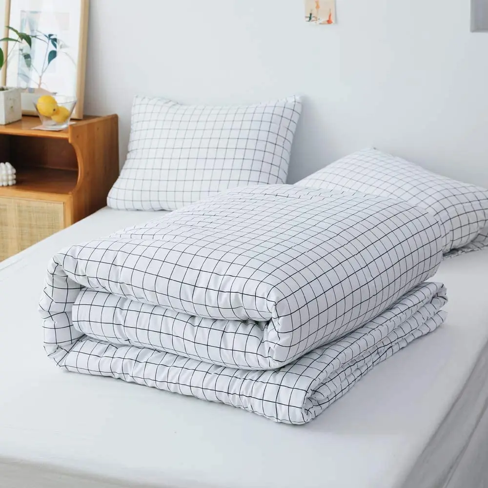 Soft Lattice Printing Duvet Cover Set With Pillowcases Quilt Cover Set Comforter Cover for Bedroom 100% Polyester