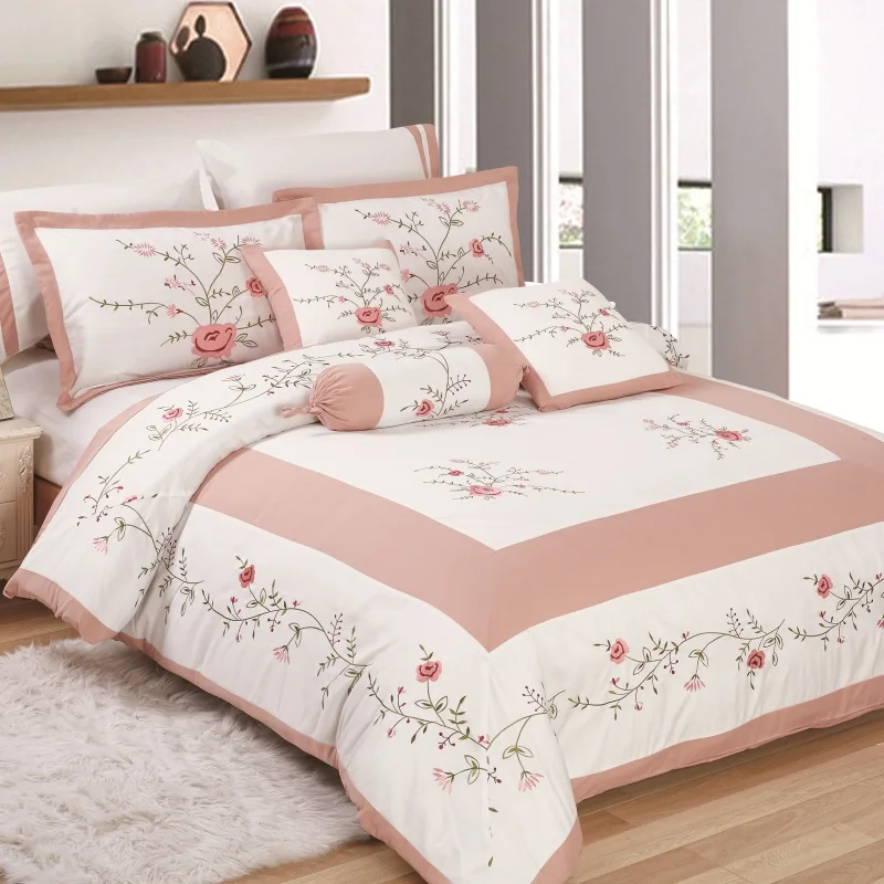 KOSMOS Microfiber Fabric Luxury Embroidery Design Patchwork Comforter Set