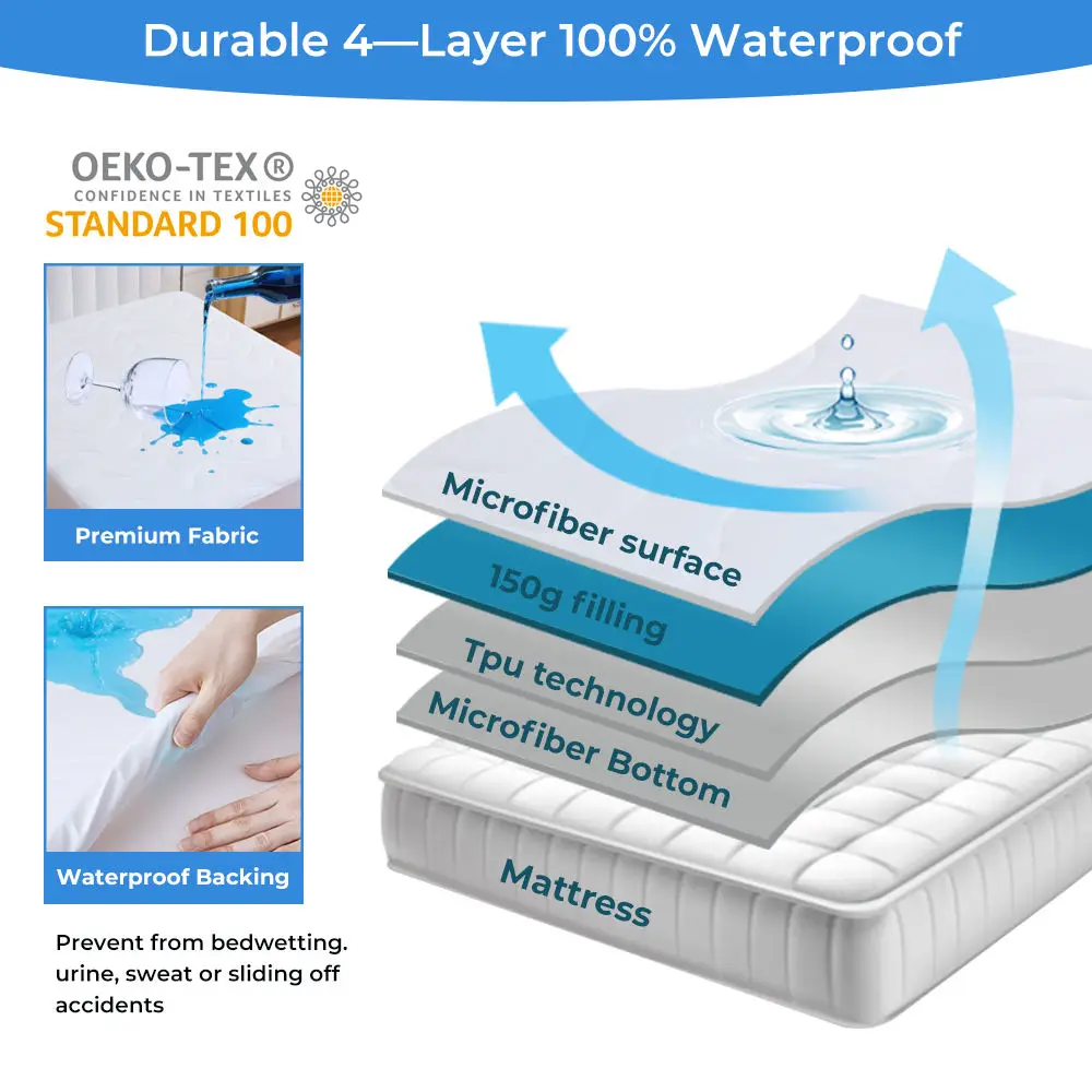 Waterproof Terry Cloth Quilted Bed Mattress Protector with Zipper Bed Bug Protection Single Size