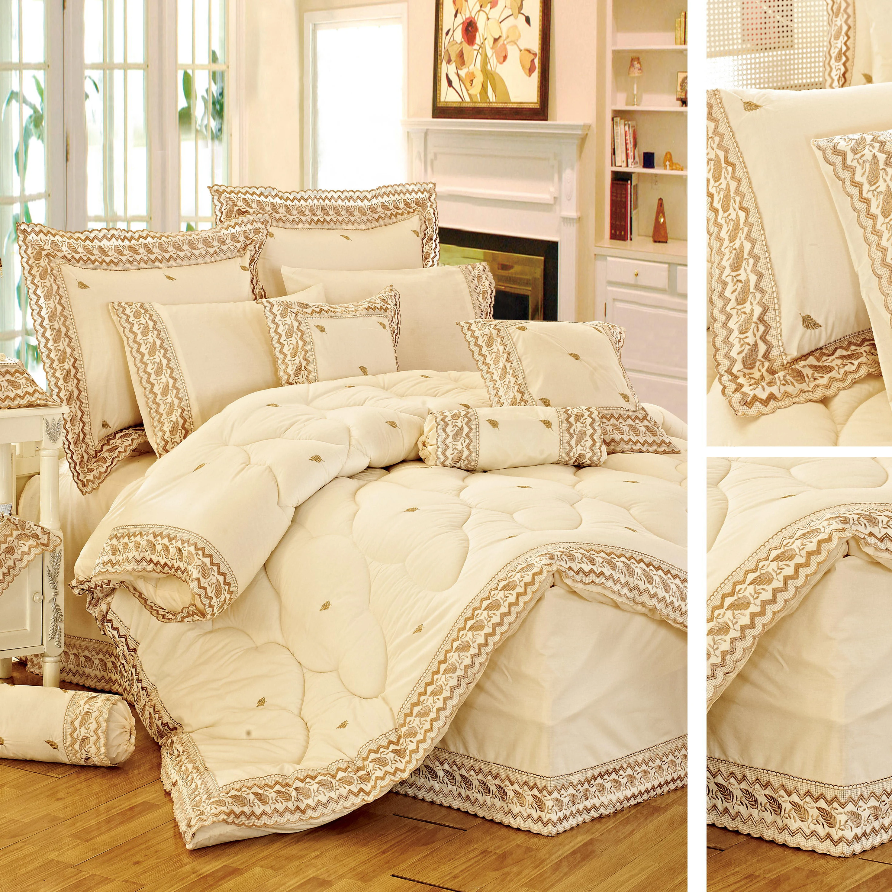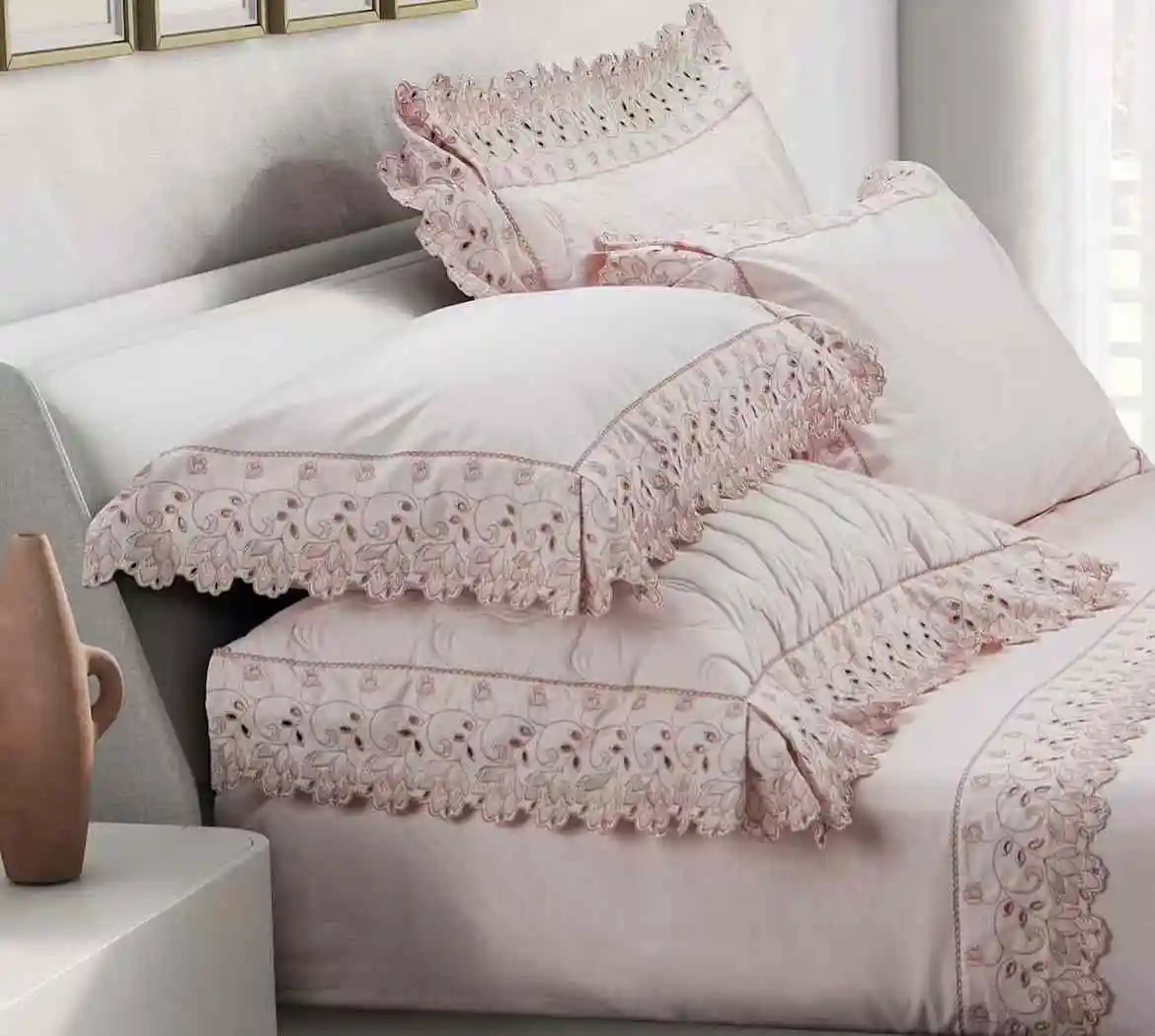 KOSMOS King Polyester Microfiber 90gsm Embroidery Sheet Set 4pcs Bedding Set