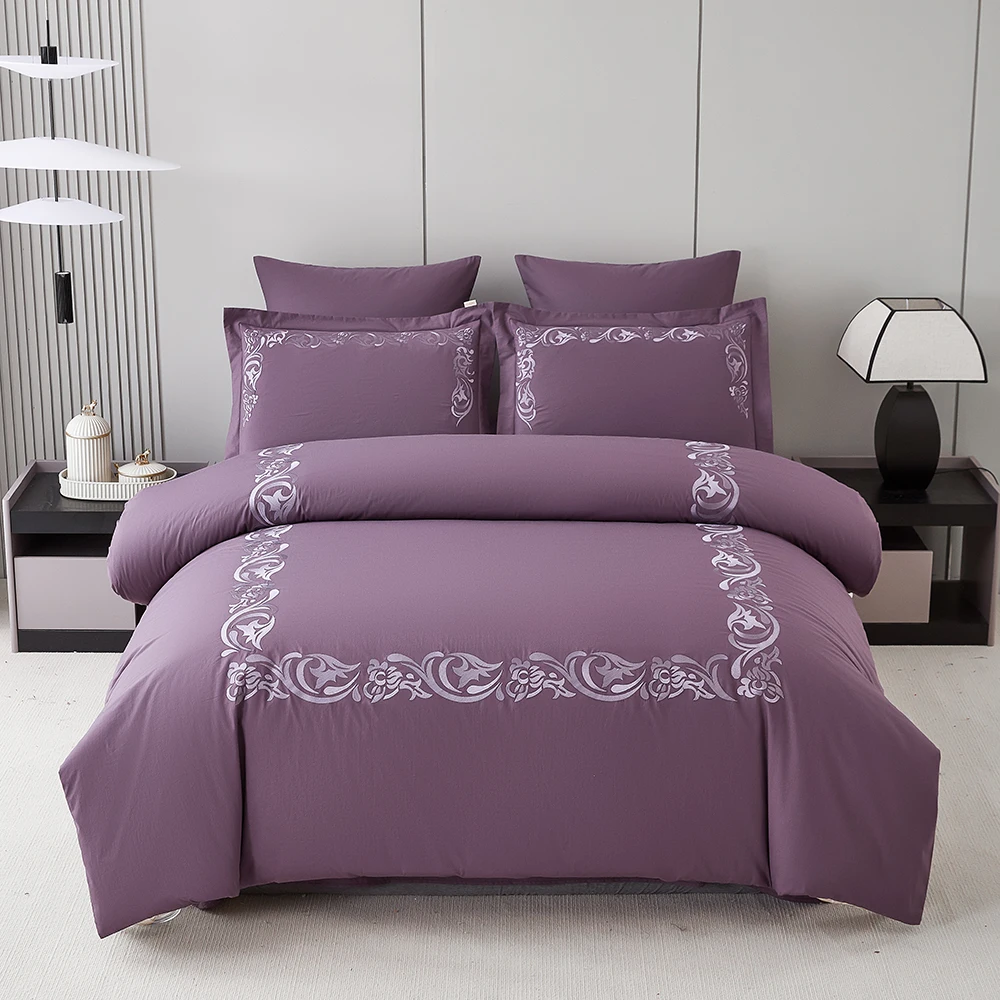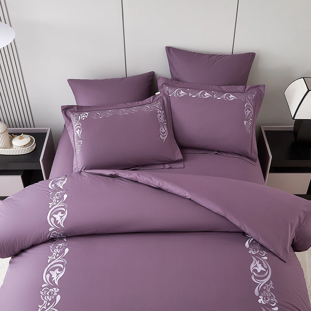 For KOSMOS Nantong Summer Cotton Embroidery Purple Duvet Cover Set