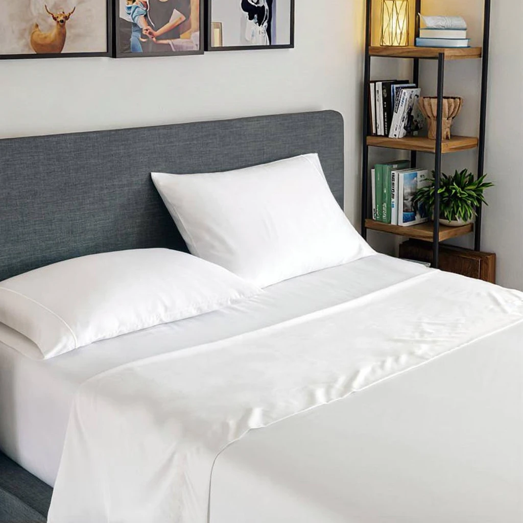 100% Bamboo Fiber Woven Modern Solid Color Bedding Set Super King Size Includes Flat Bed Sheet Fitted Duvet Cover