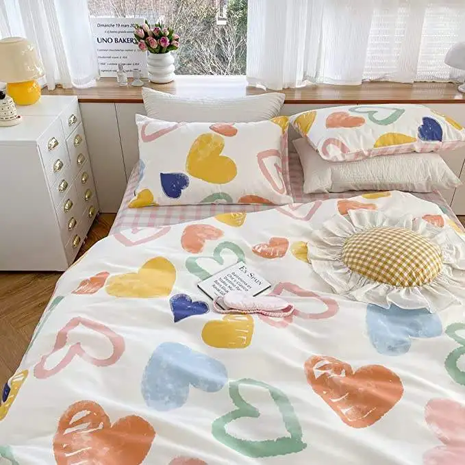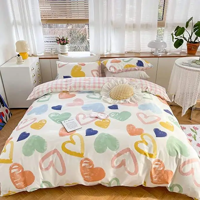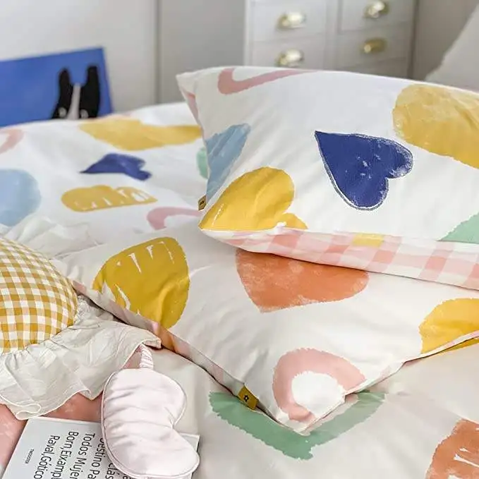Children Pure Cotton Soft Cute Cartoon Heart Shape Comforter Bedding Duvet Cover Set