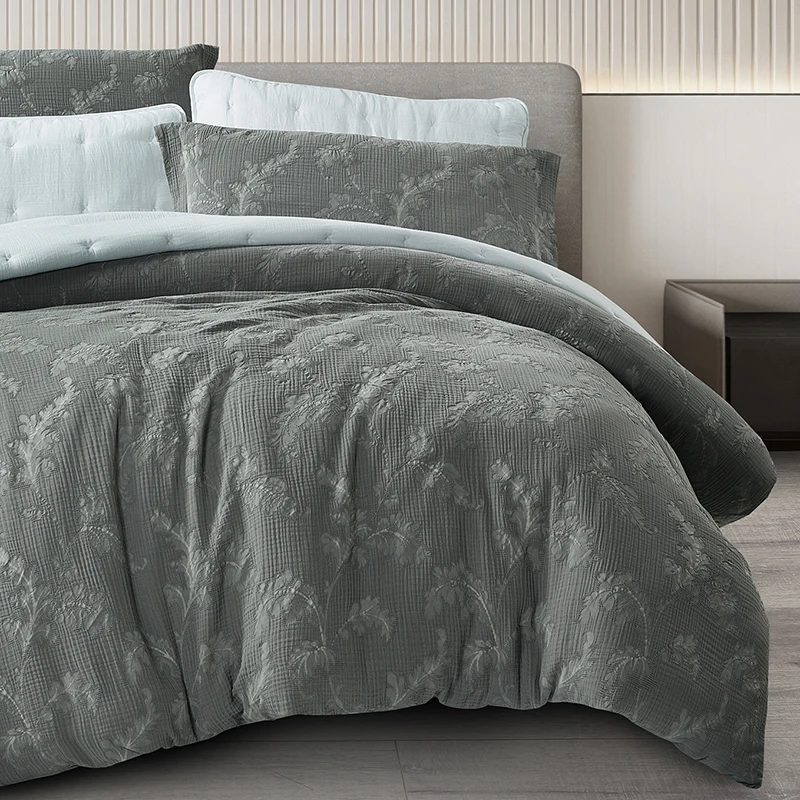 For High Quality OEKO-TEX Certified Eco-Friendly Jacquard 4-Piece Bedding Set Polyester Filling Plain Style Comforter for