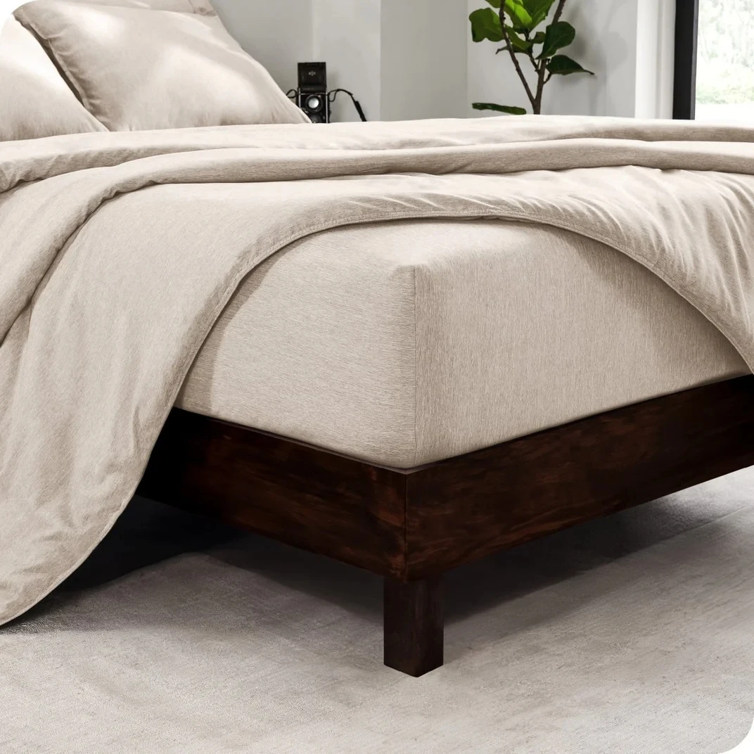 100% Bamboo Fiber Woven Modern Solid Color Bedding Set Super King Size Includes Flat Bed Sheet Fitted Duvet Cover