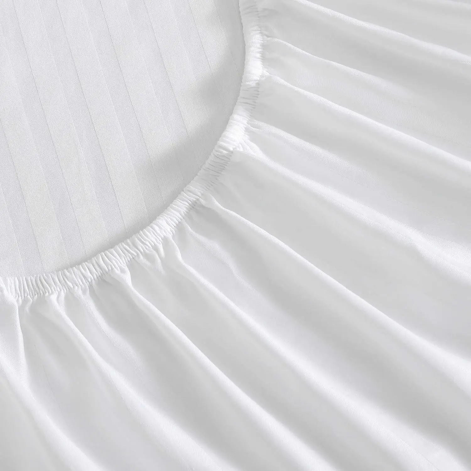White 100% Cotton Satin Stripe Hotel Bedding Set 1cm Stripe Design 4 Piece Set Fitted Bottom Sheet Soft Feel