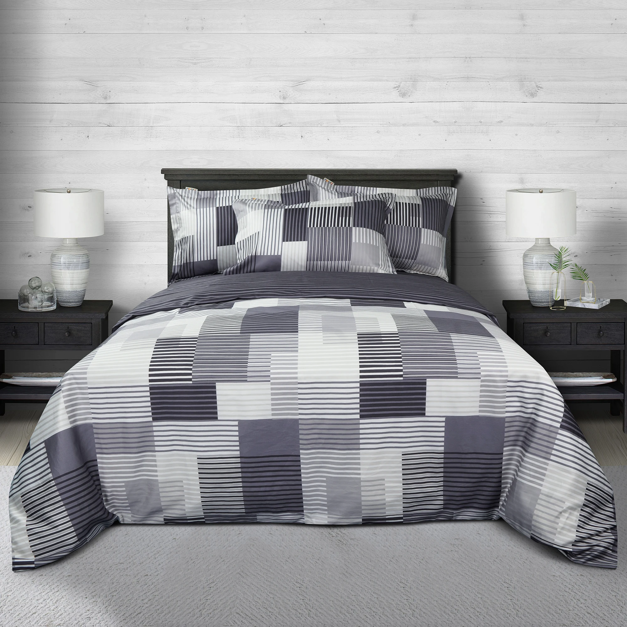 100% Bamboo Fiber King Size 300tc 3-Piece Modern Duvet Cover Set with Flat Sheet Fitted Sheet and Pillowcases