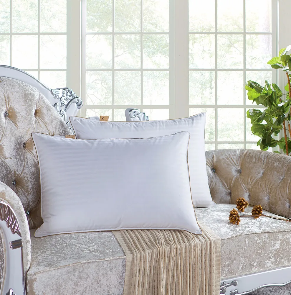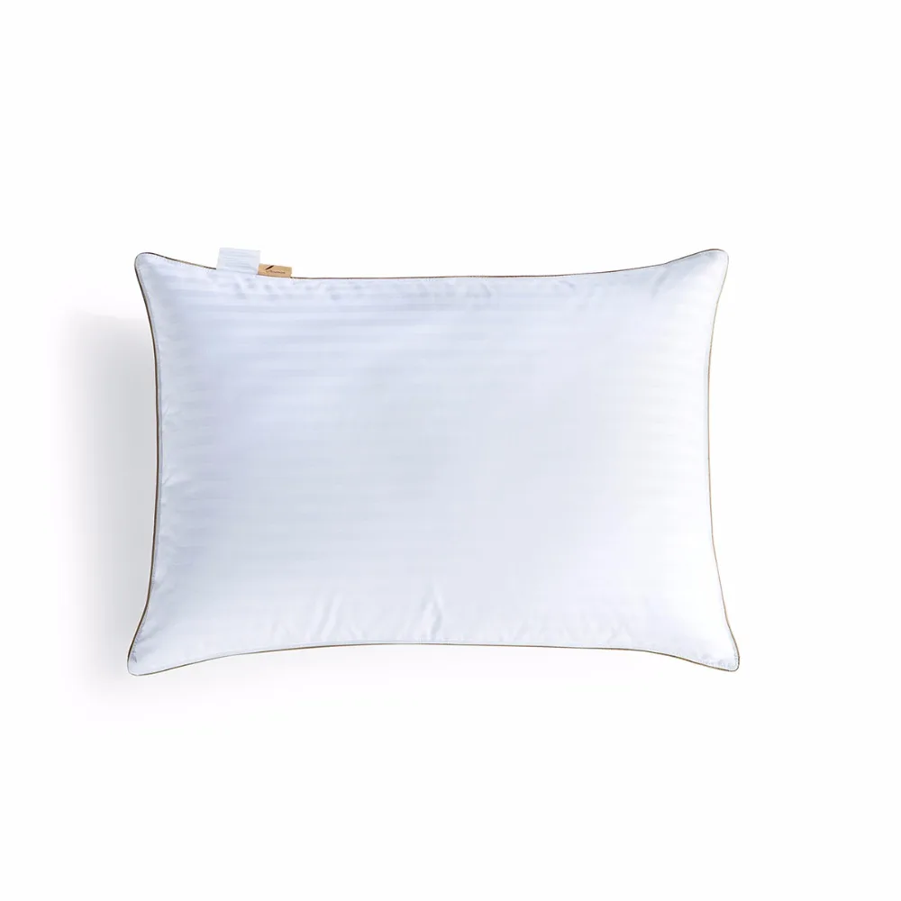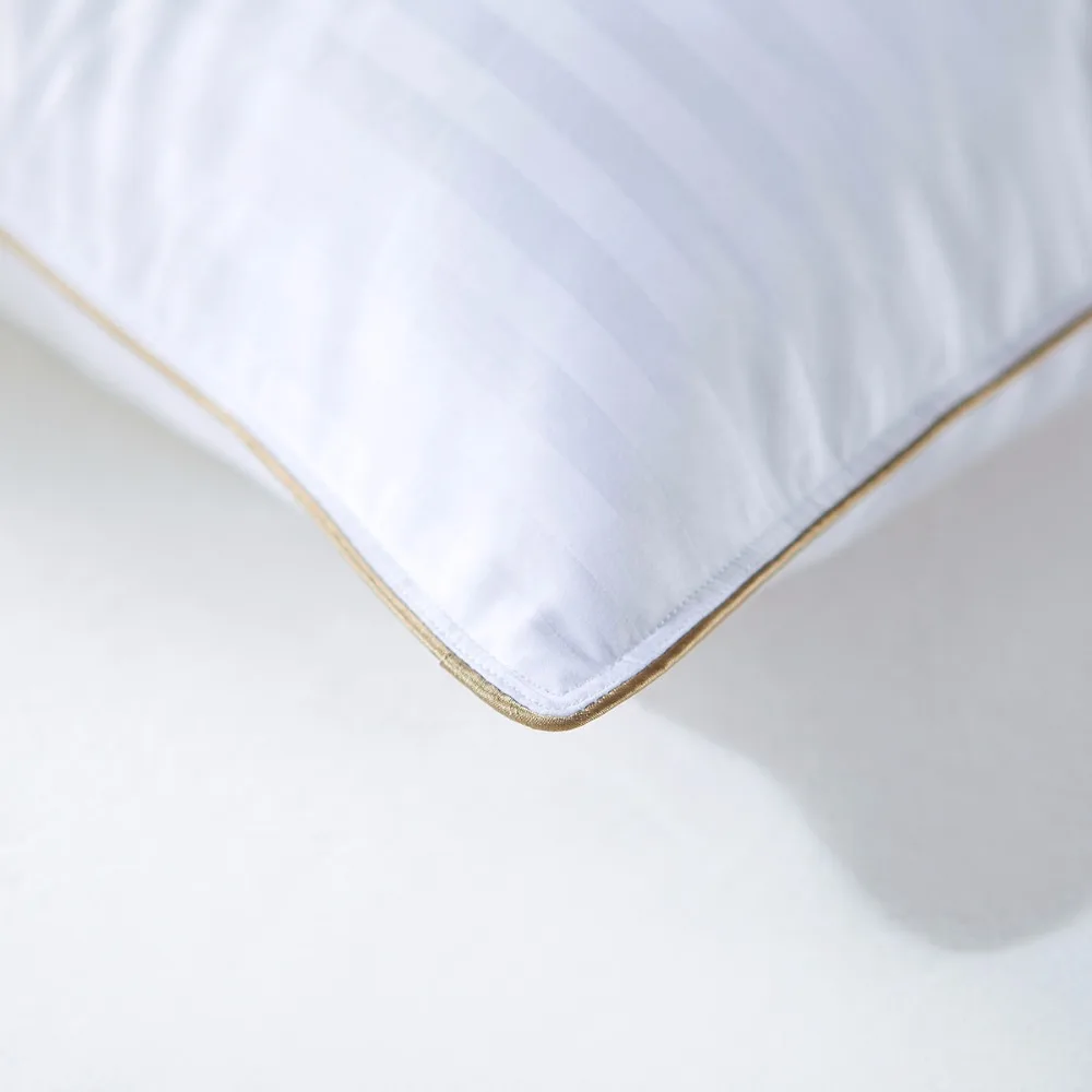 Washed 20% Duck Down Filled Pillow,Machine Washable Queen Size 1cm Stripe Fabric Gold Satin Home Bed Pillow