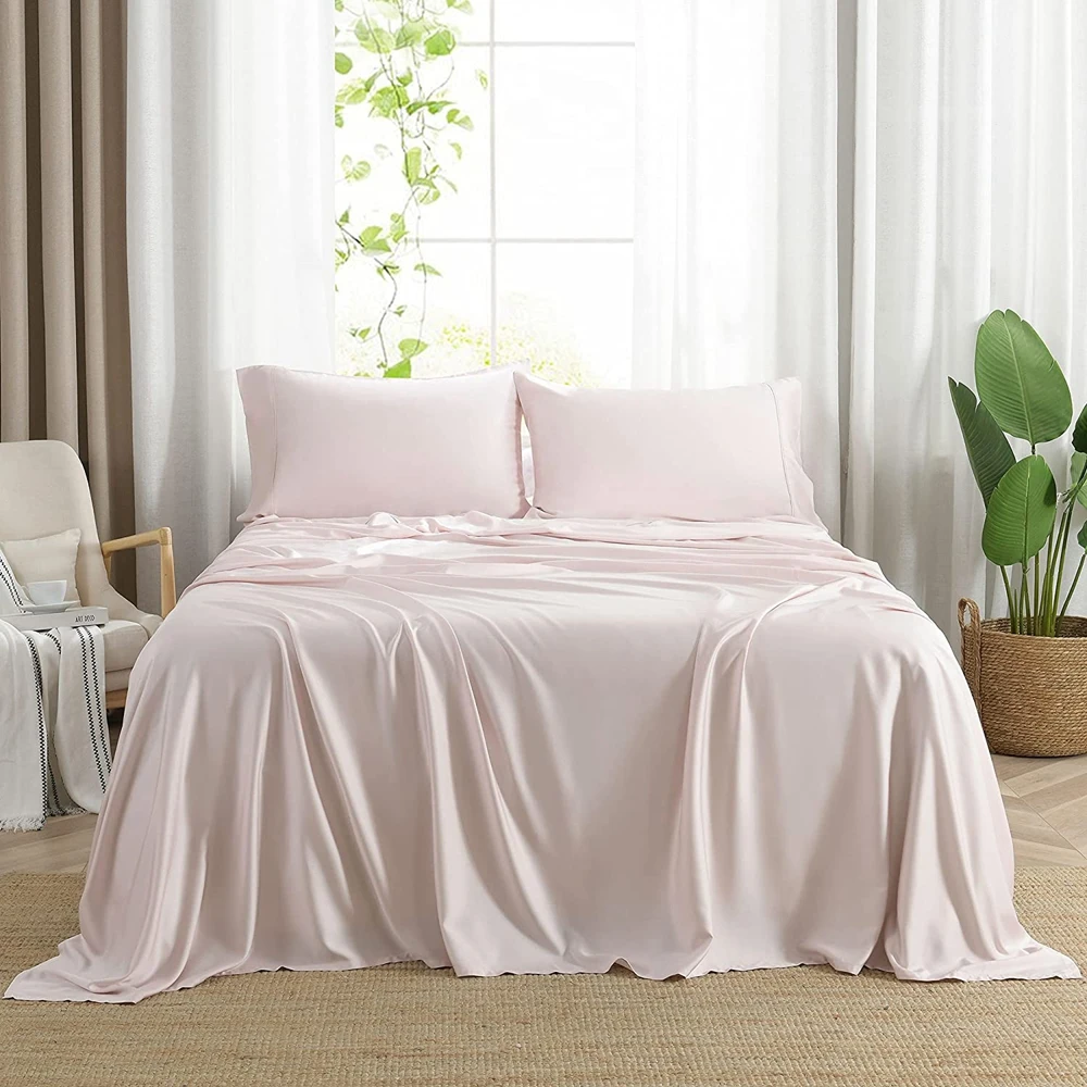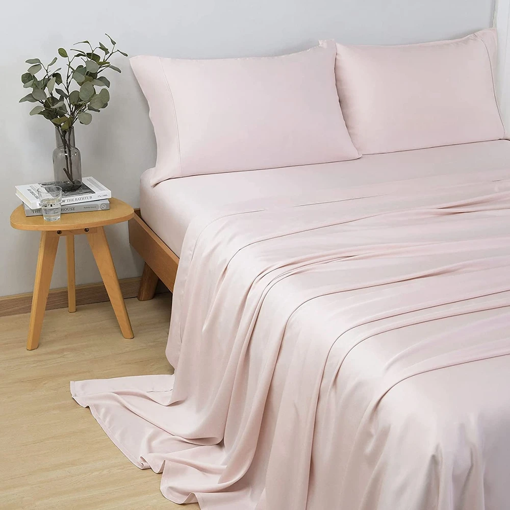 100% Bamboo Woven Modern Solid Color Bedding Set Flat Sheet Fitted Sheet Pillowcases 300tc Thread Count Wedding Four-piece Kit