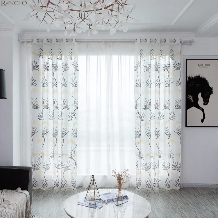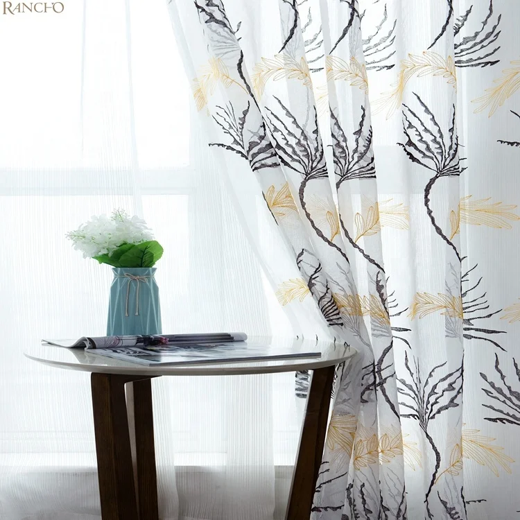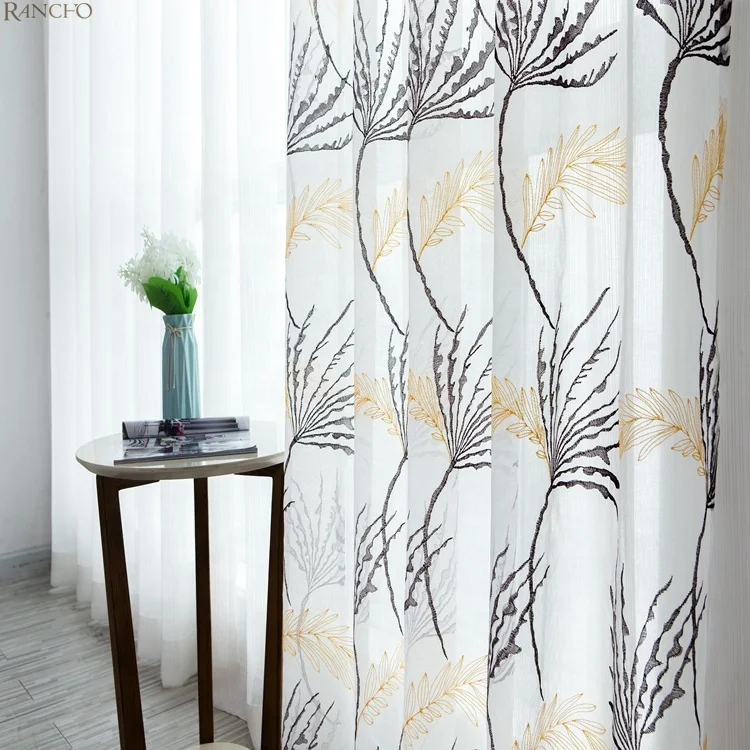 Polyester Embroidered Sheer Curtains Linen Curtains Sheer Embroidered Sheer Curtain Living Room