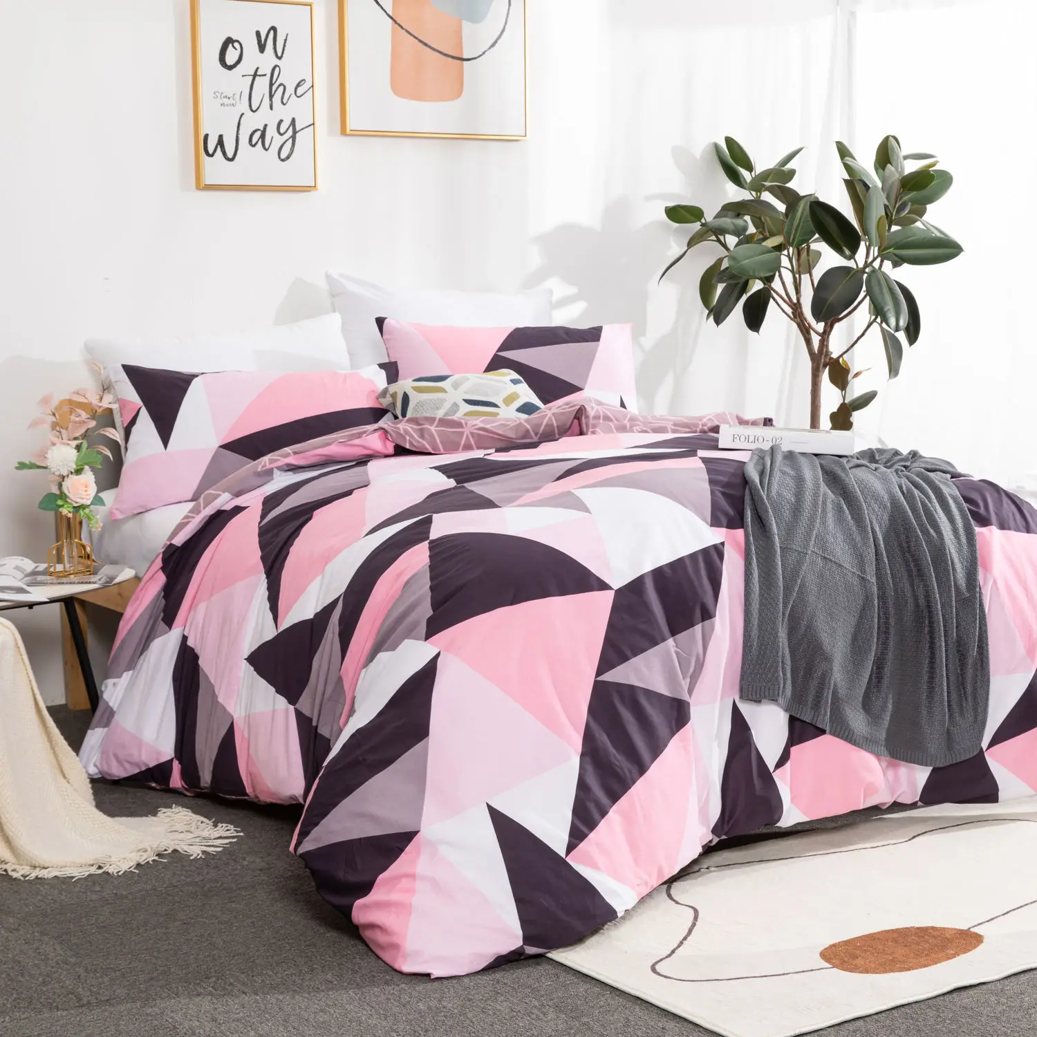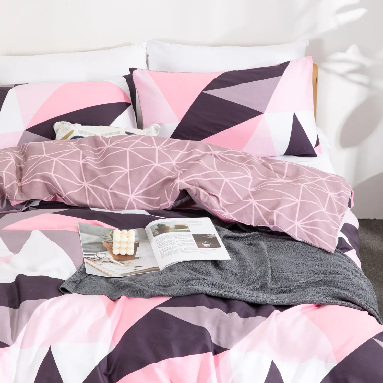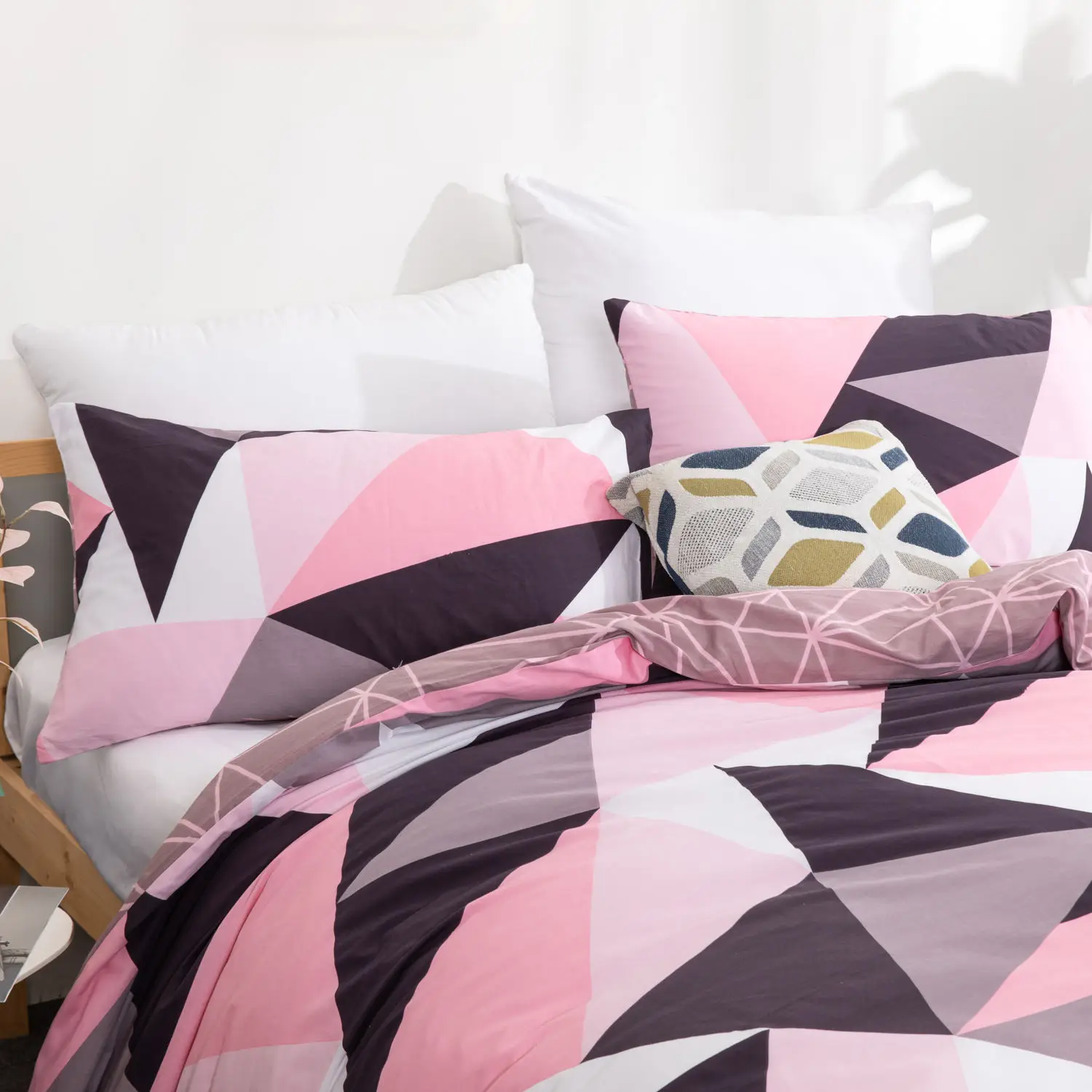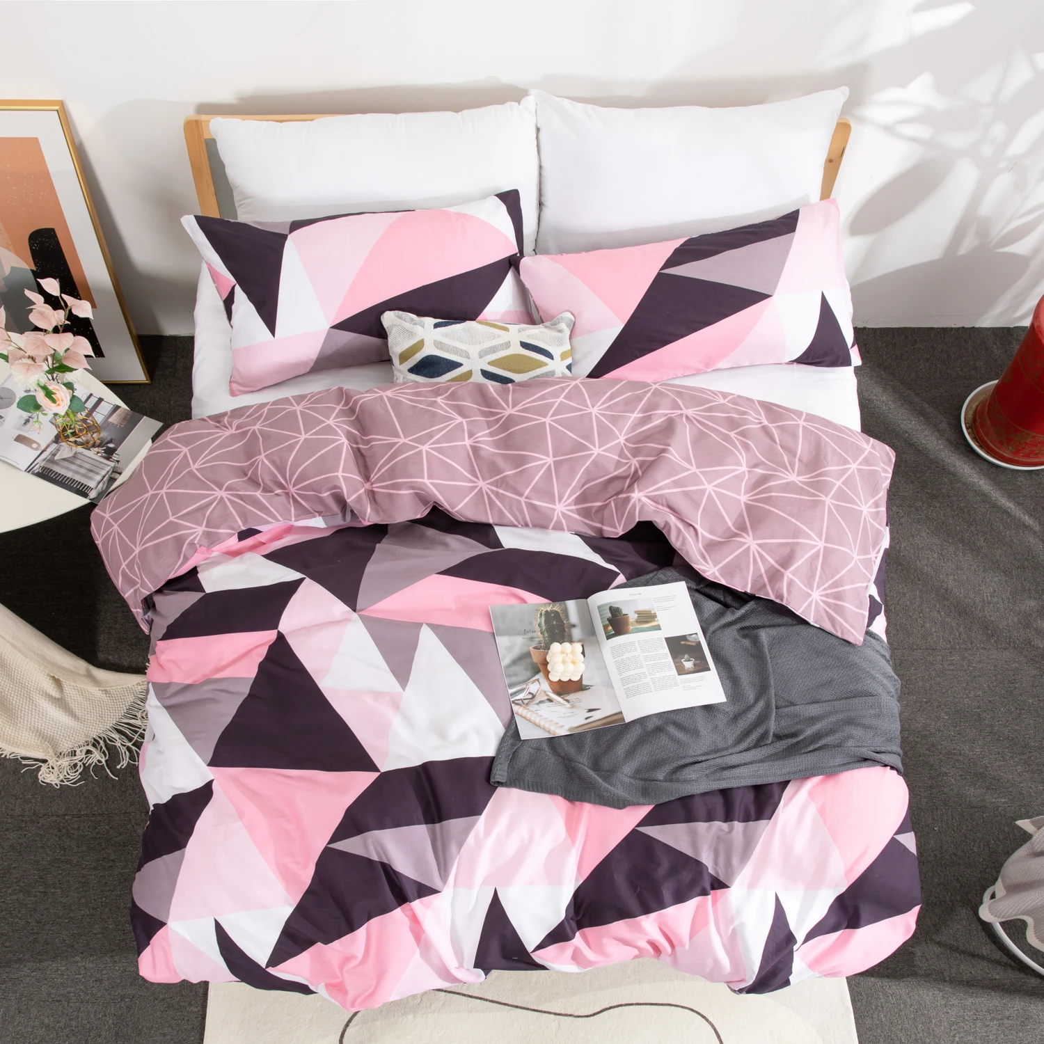 Modern Simple Style Geometry Pattern 100% Cotton Duvet Cover Bedding Set With Button Closure