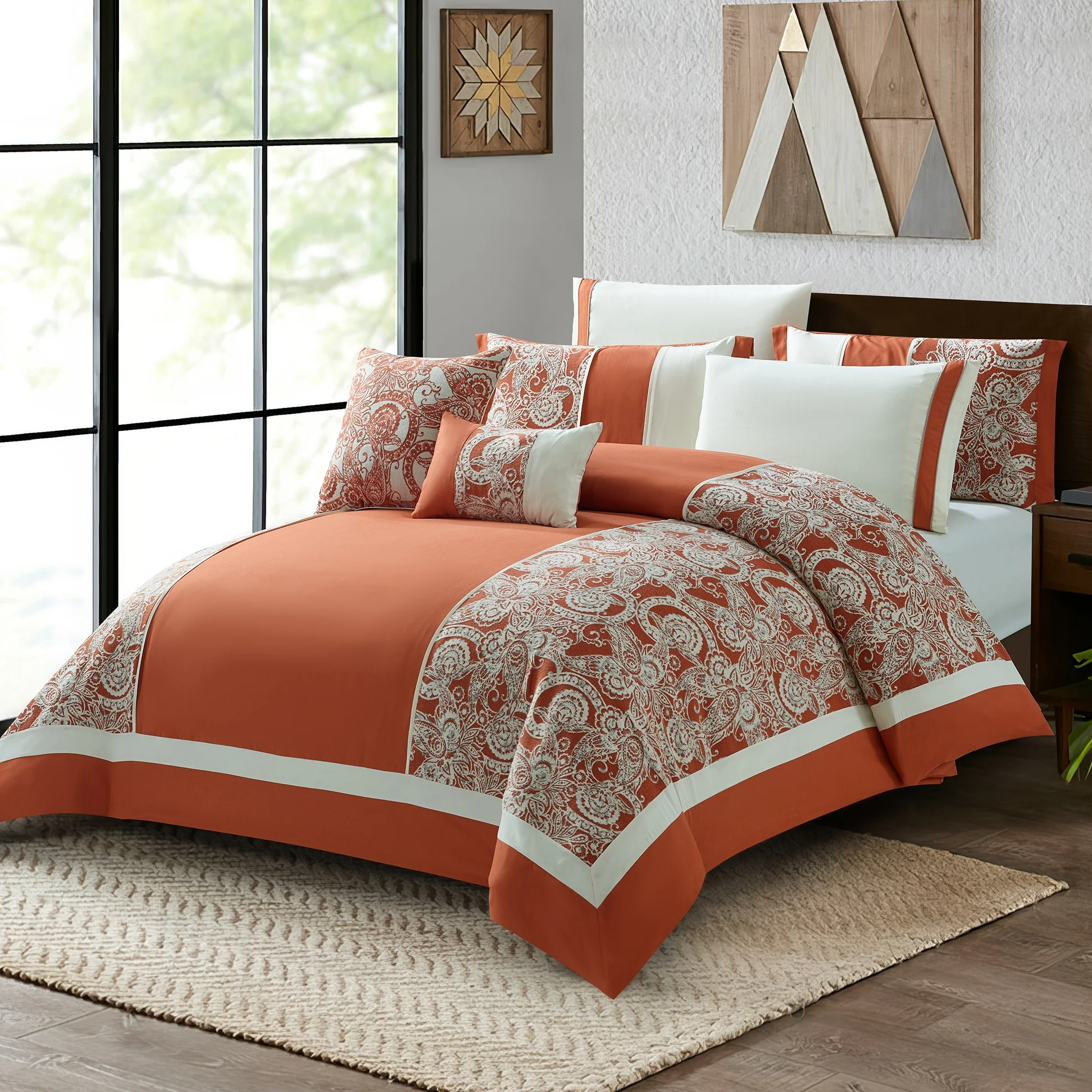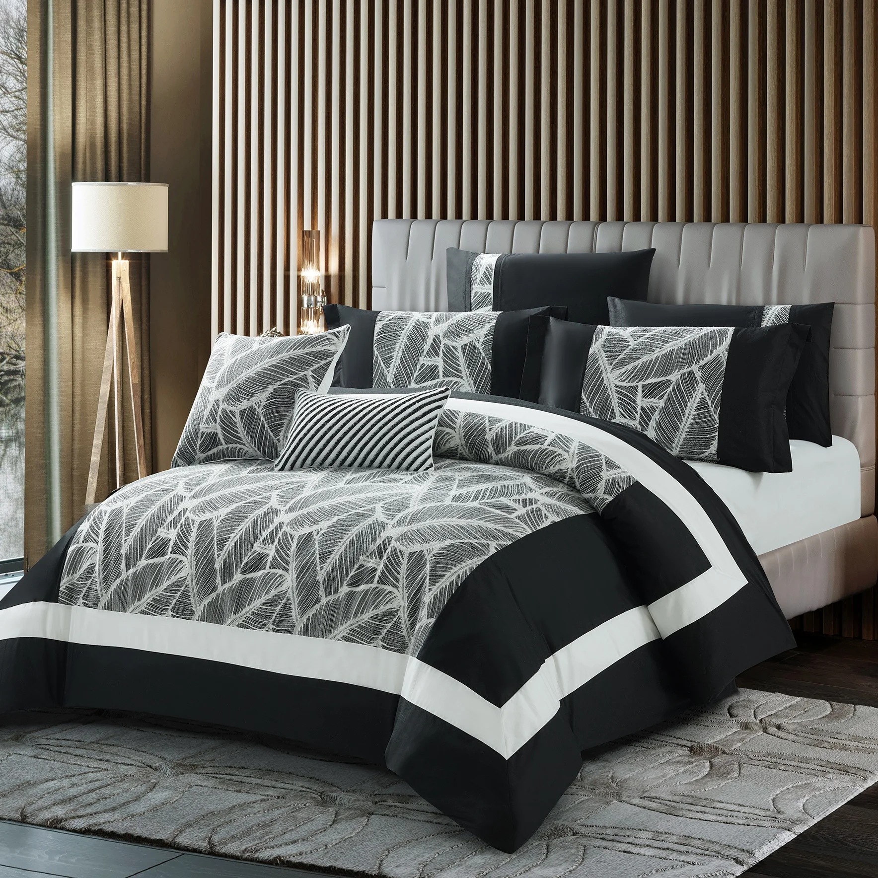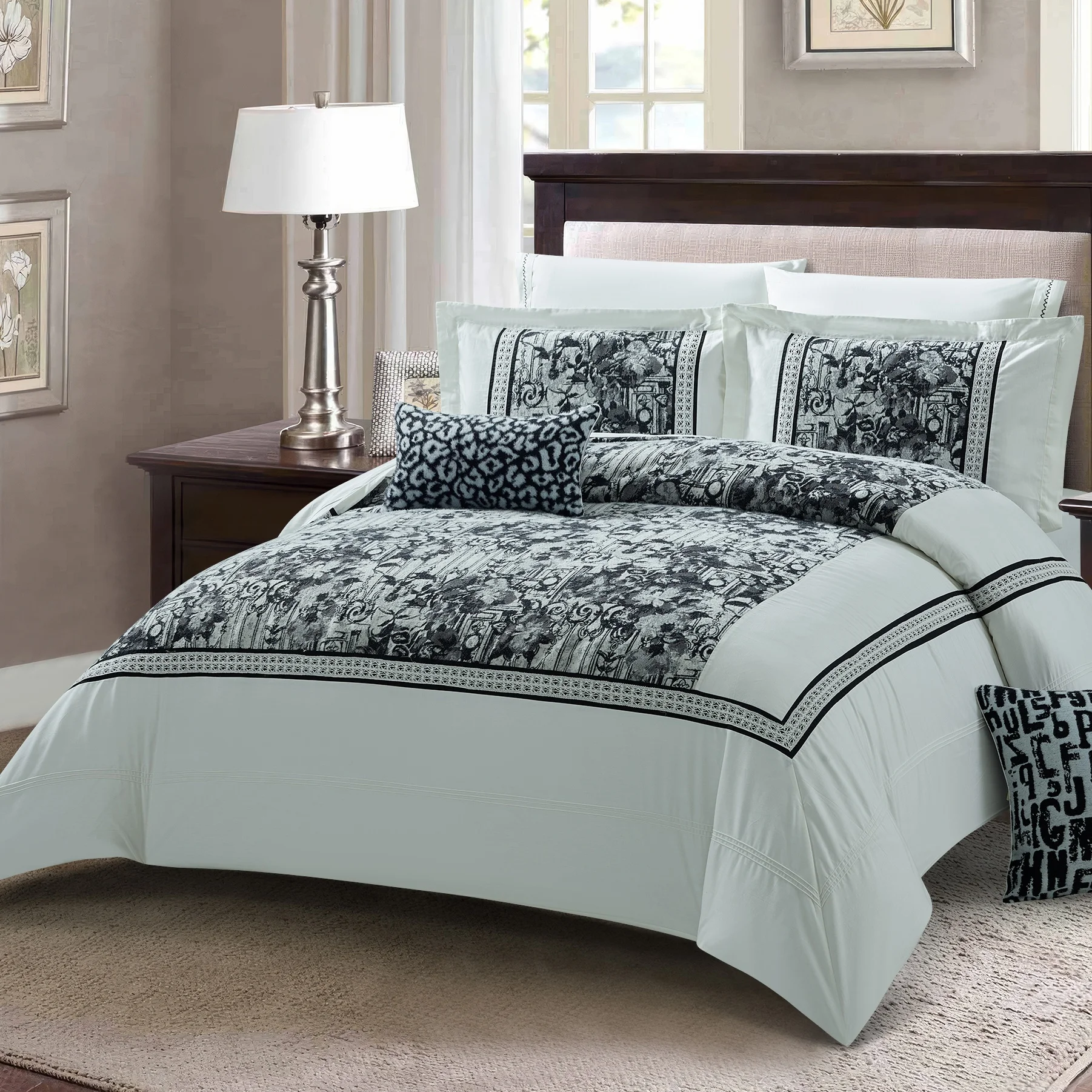 Factory Thick Woven Embroidery King Size Microfiber Comforter Set Plain Style 8 Pcs