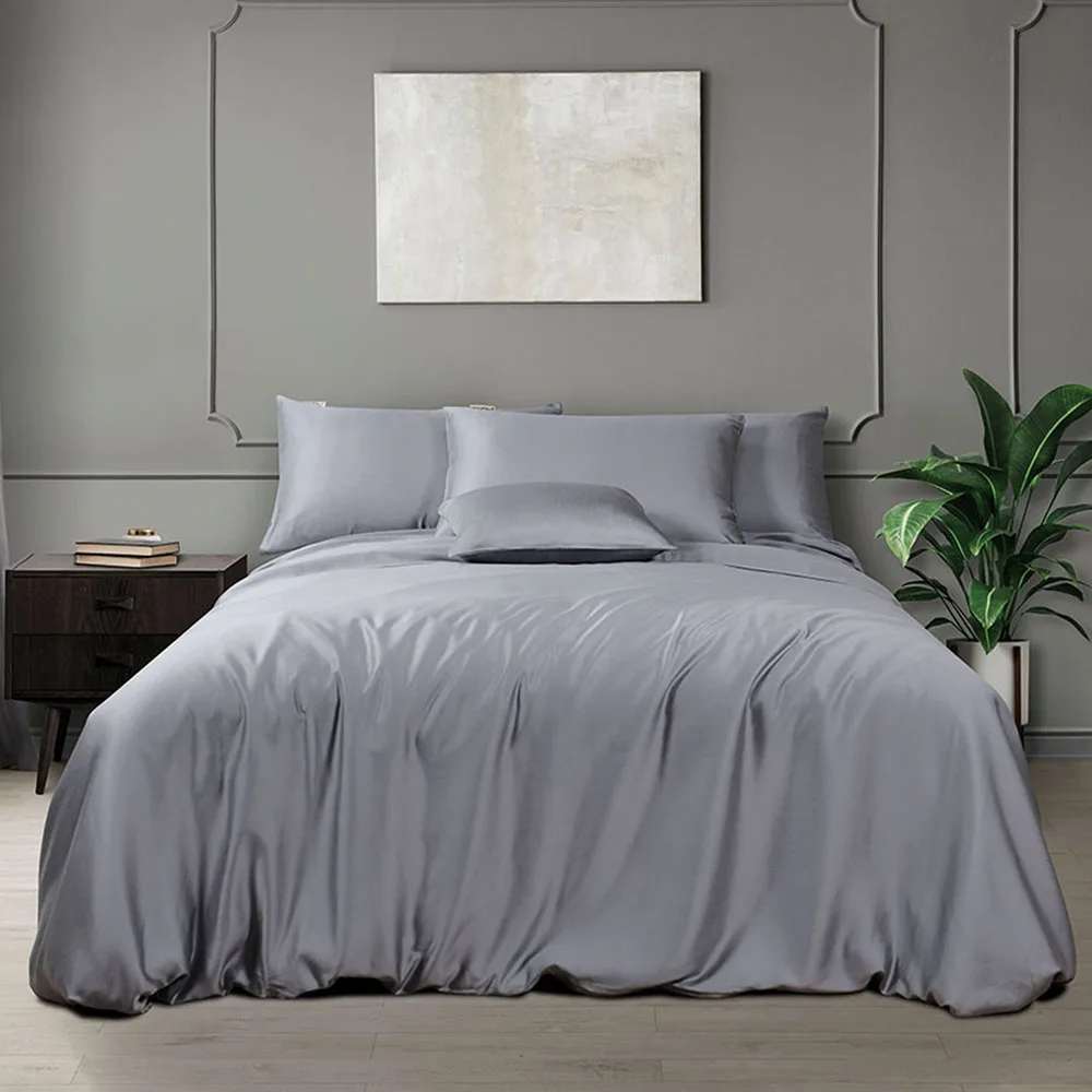 Organic 100% Eucalyptus Lyocell Plain Bed Sheet Queen Size Slik Bedsheets Luxury Bedding Set Solid Color Duvet Cover