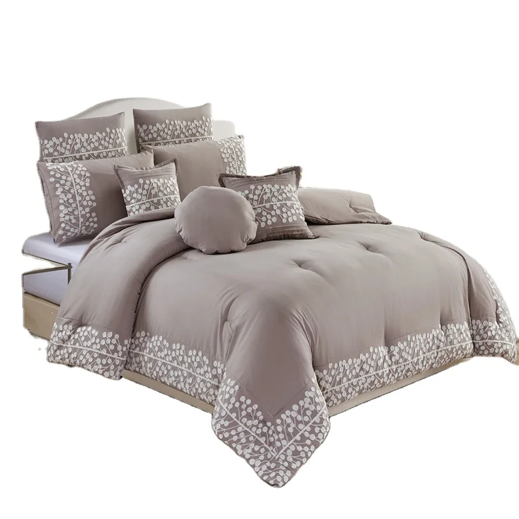 Customized Design 100% Polyester Microfiber Bedding Sets 7 Pieces Comforter Luxury Embroidery Comforter Sets Bedding