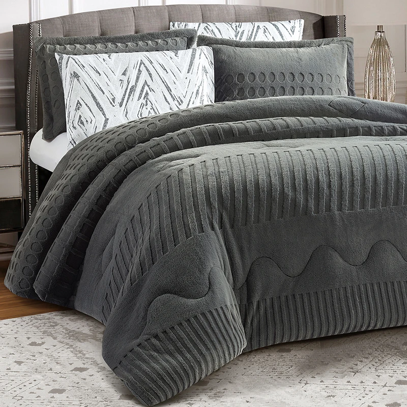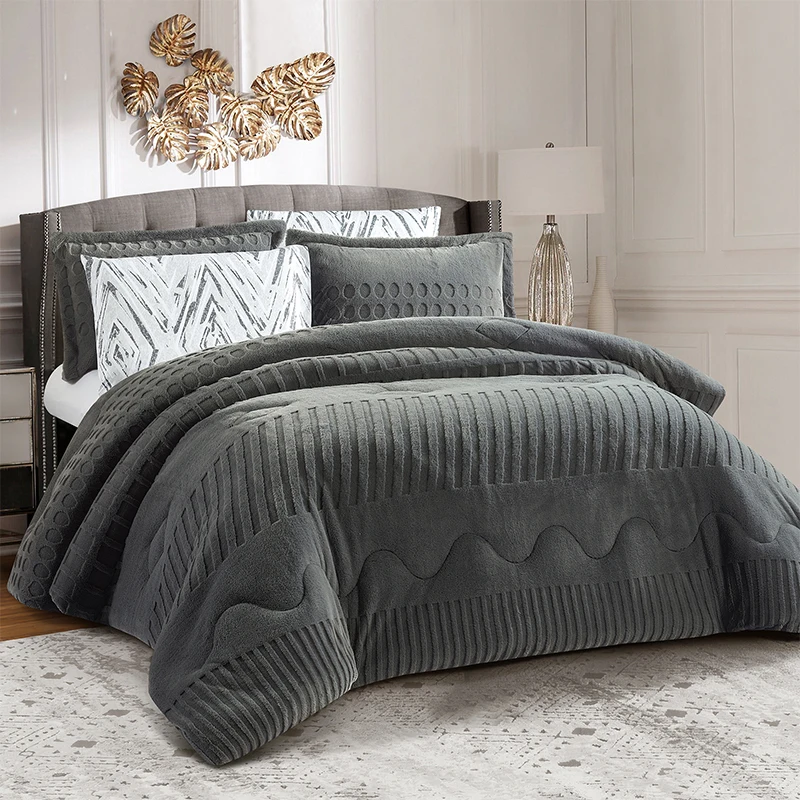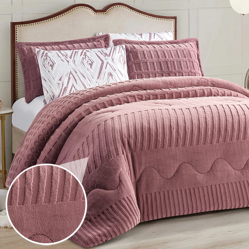 For KOSMOS Winter Vintage Jacquard Comforter Bedding Set 6pcs Warm and Soft Velvet 200TC Woven Pattern
