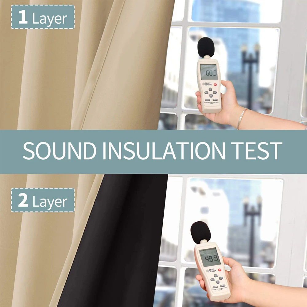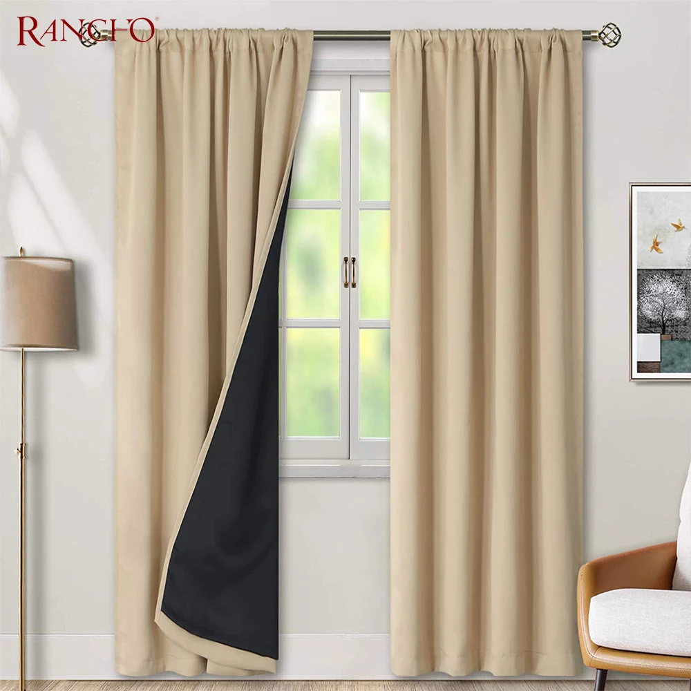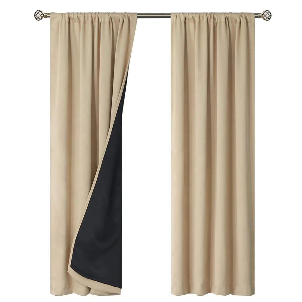 Double layers 100% Blackout Window Curtain Hotel Panels Heat and Full Light Blocking Drapes Black Curtain for the Living Room