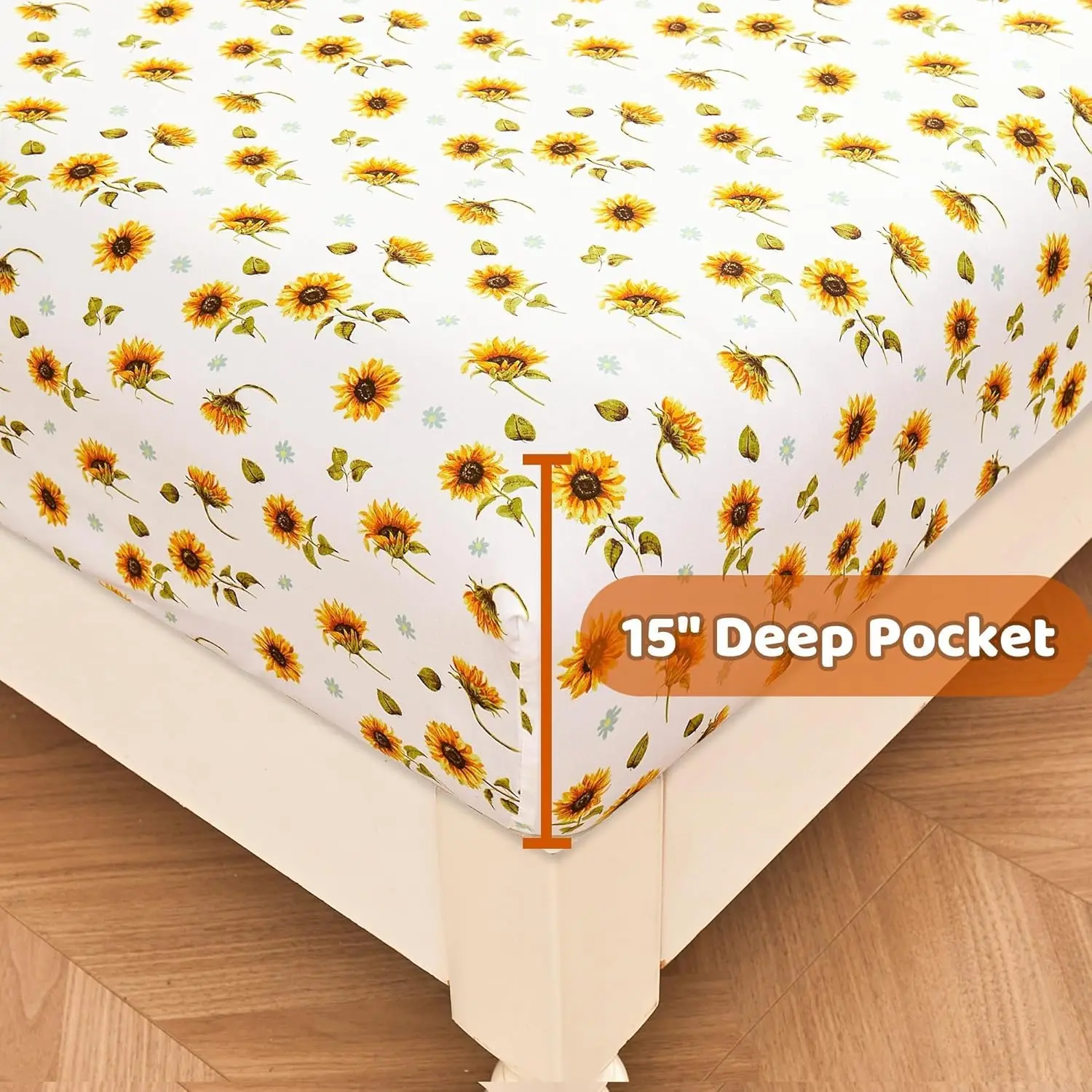 Flower Bed Sheets Printed Sheets Queen - 4 Piece Microfiber Patterned Fitted Sheets with 15" Deep Pocket