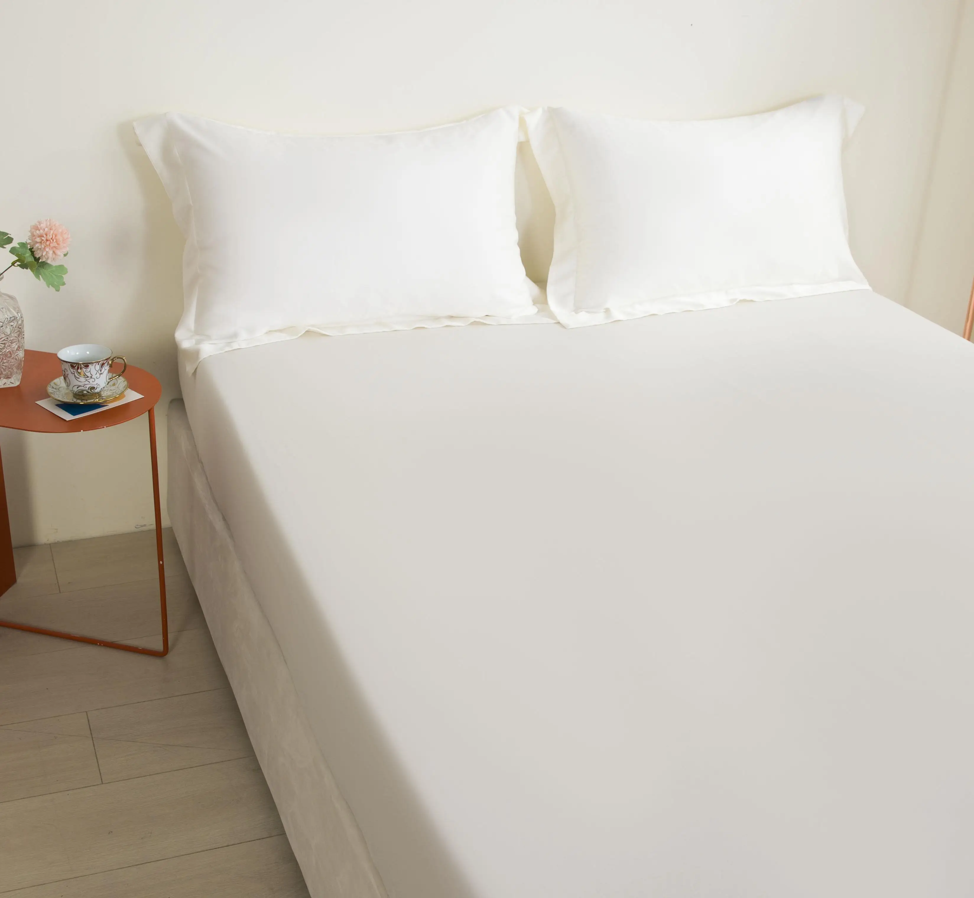100% Bamboo Fiber Woven Modern Solid Color Bedding Set Super King Size Includes Flat Bed Sheet Fitted Duvet Cover