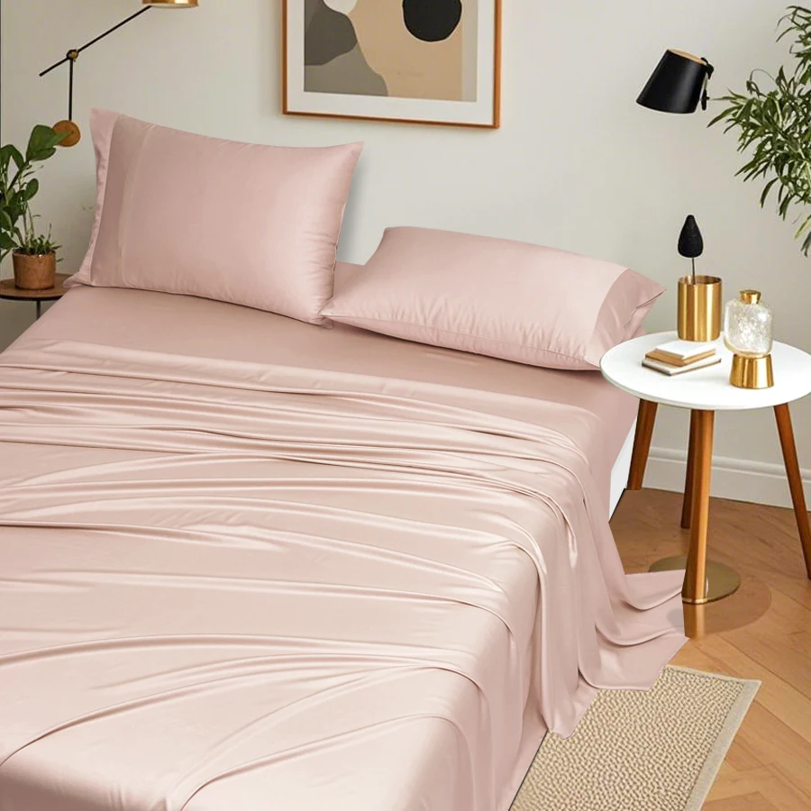 100% Bamboo Woven Modern Solid Color Bedding Set Flat Sheet Fitted Sheet Pillowcases 300tc Thread Count Wedding Four-piece Kit