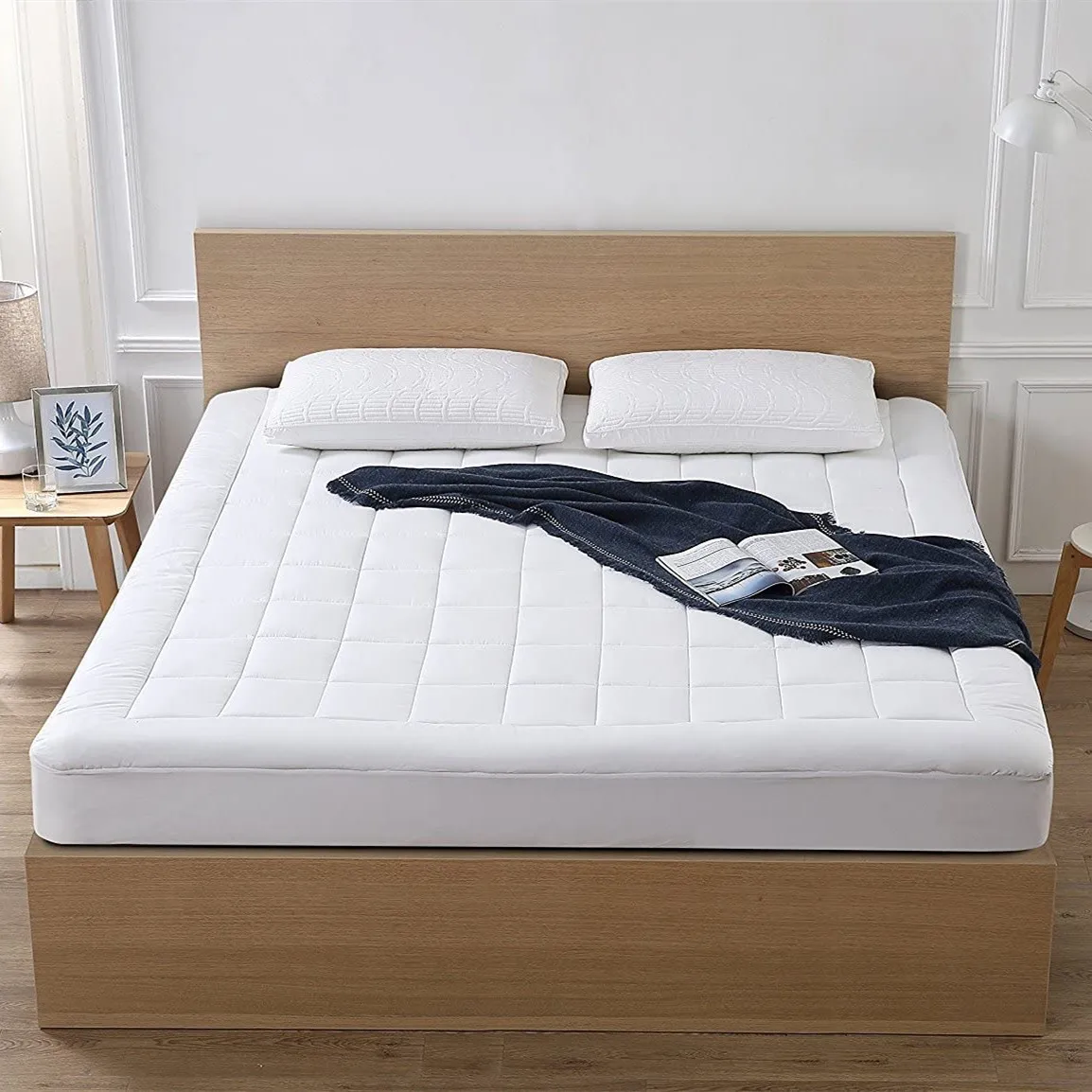 Cooling Breathable Fluffy Soft Mattress Pad 100%bamboo Quilted Bed Mattress Topper With Deep Pocket Elastic Bottom