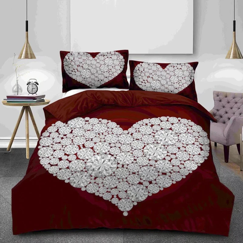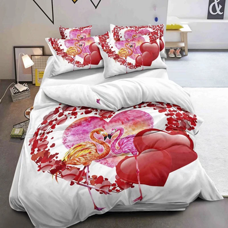 Winter Red Color 3D Duvet Cover Love Printing Bed Sheets Warm Bedsheet Fabric 100% Polyester Printed Bedding Set