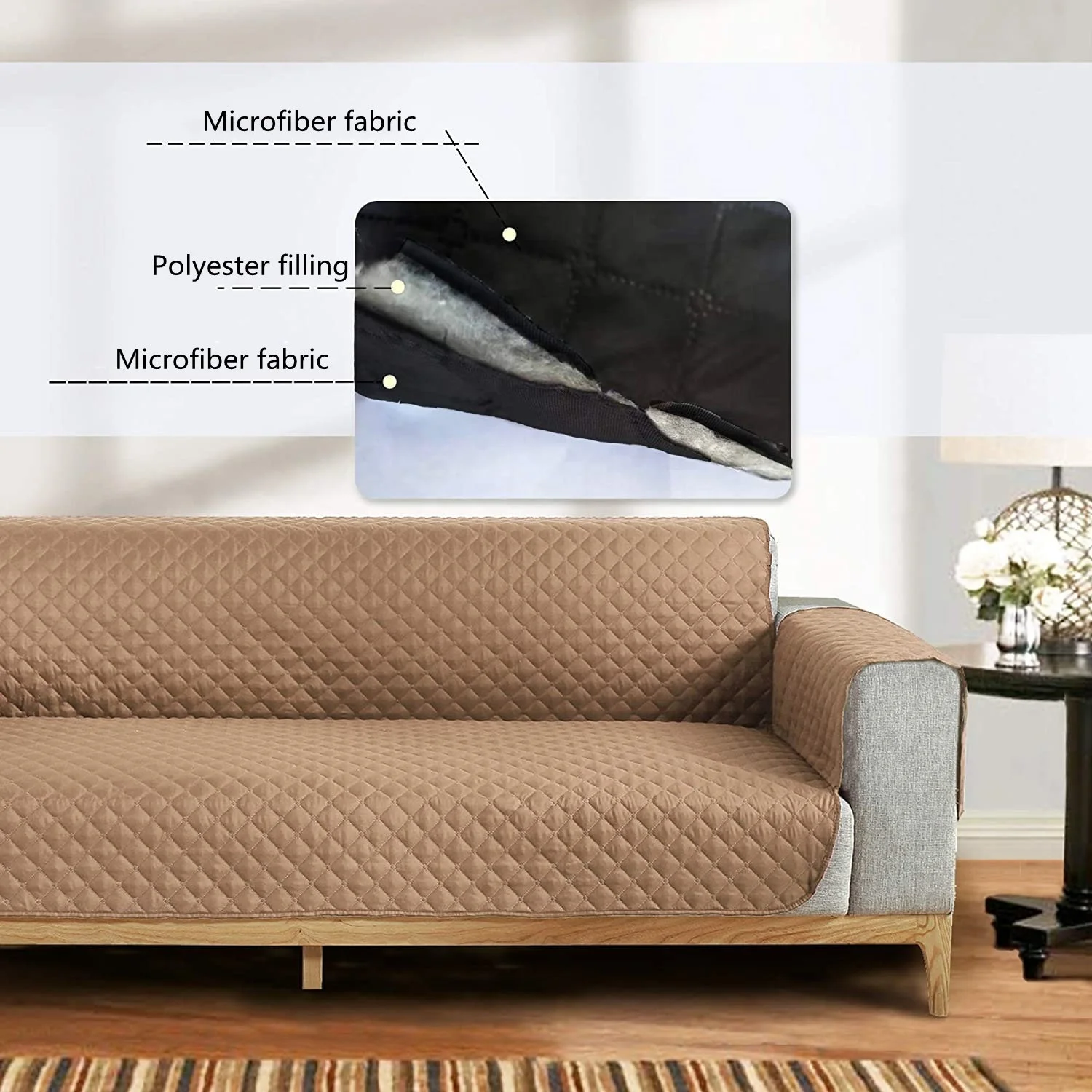 Waterproof Couch Cover Reversible Plain Color Mifrofiber Quilted Waterproof Sofa Cover Protector for Pets Cats Dogs