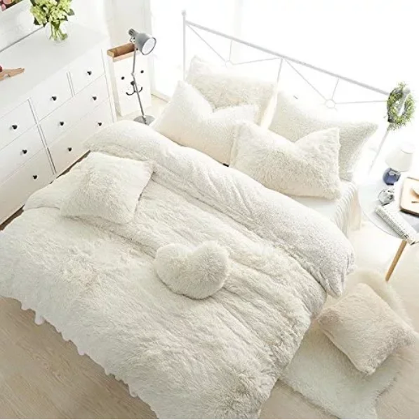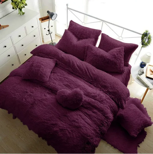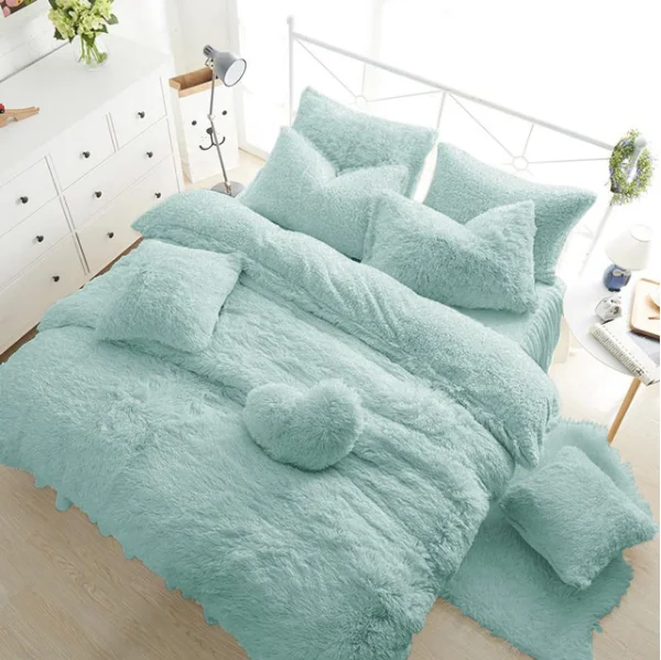 Comforter Duvet Cover Set Custom Design Solid Color Fleece Soft Thick Winter Bedding Comforter Pillowcase Fluffy Duvet Cover Set