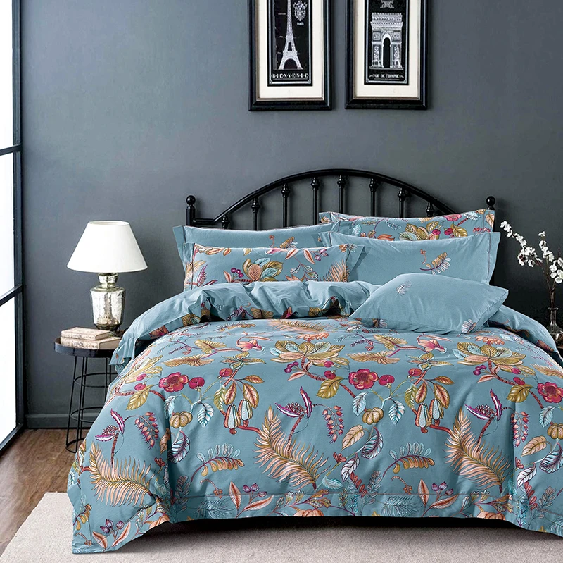 100% Bamboo Fiber King Size 300tc 3-Piece Modern Duvet Cover Set with Flat Sheet Fitted Sheet and Pillowcases