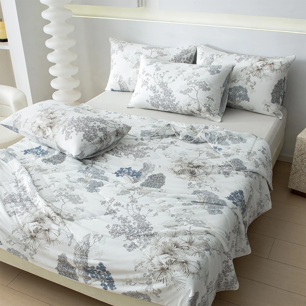 Digital Printing Cooling Bedding Set Silky Nylon Spandex Quilt With Pillowcase Sets