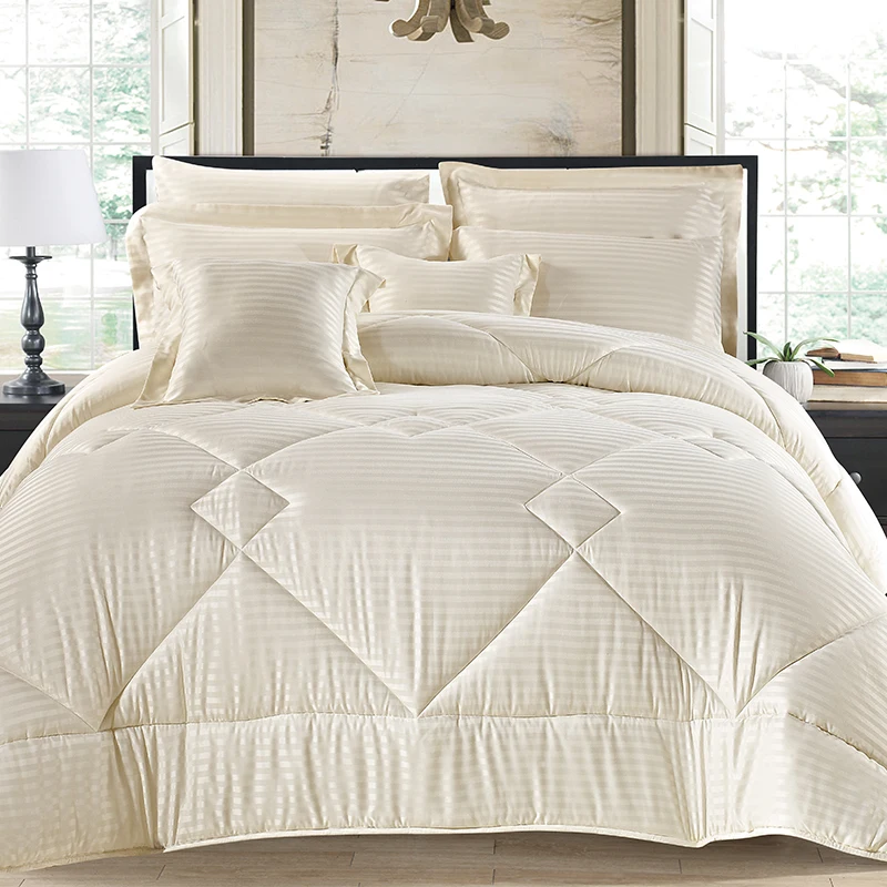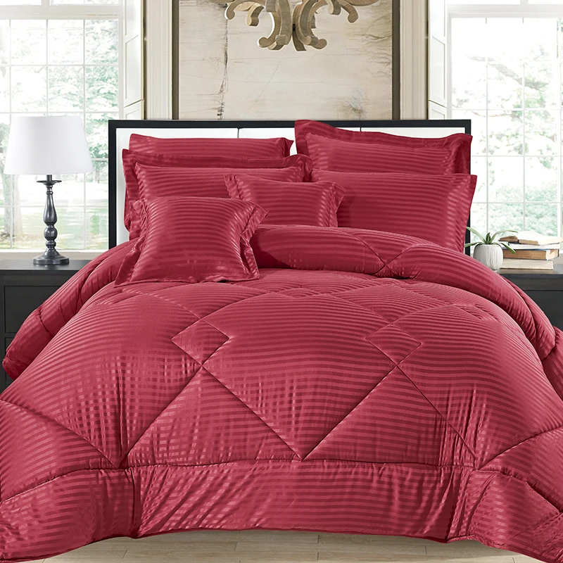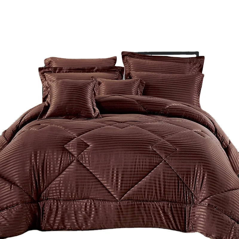 100% Polyester Dobby Stripe Comforter Set with Embroidered Pattern Quality Woven Bedding Set