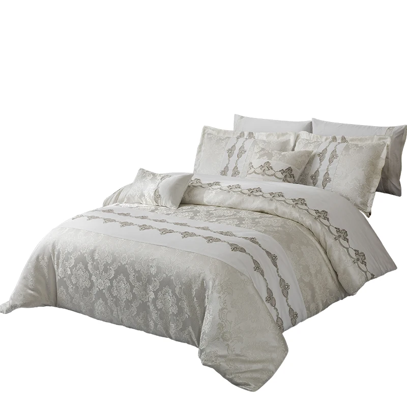 KOSMOS Applique Design Patchwork Microfiber Sheet Luxury Jacquard Bed Comforter Set