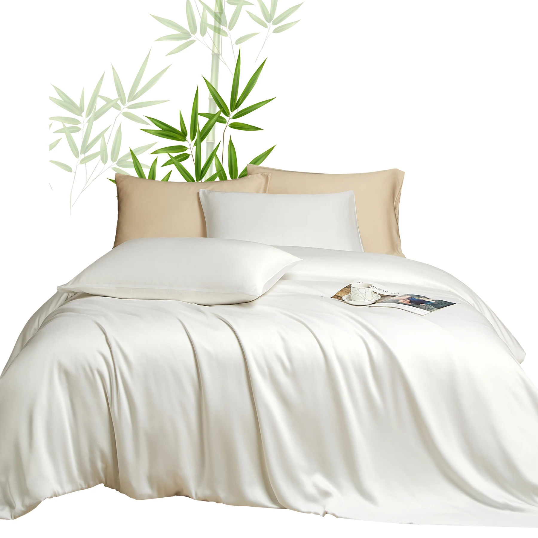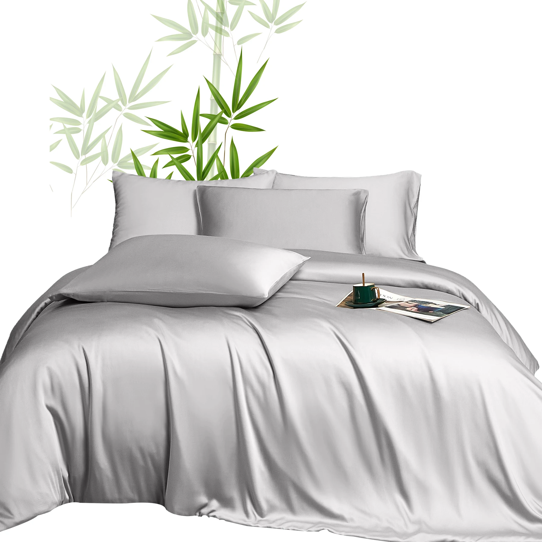 Eco Friendly Luxury Bamboo Fiber Bedding Set 4 Pieces Breathable Bed Linen for Hotel Use