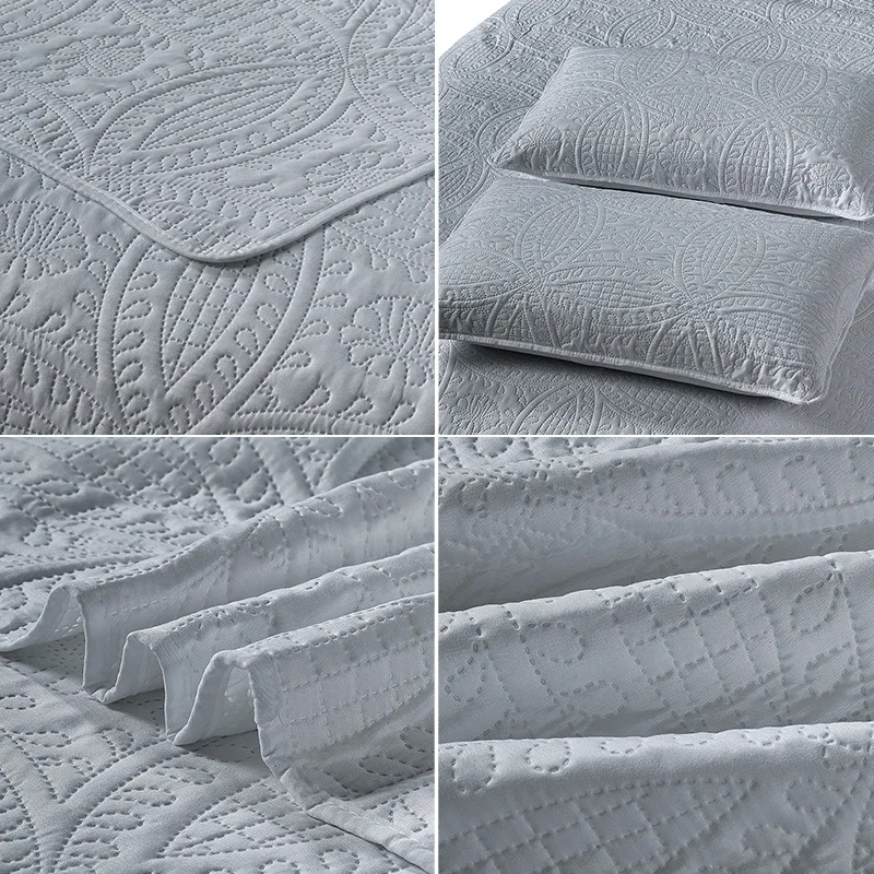Custom 100% Polyester Microfiber Quilt Set Ultrasonic Quilting Emboss Coverlet Home Use Bedspread