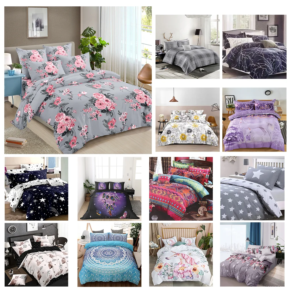 Polyester Bedding Set Bedroom Quilt Cover Fashion Digital 3d Printed Woven Duvet Cover Set