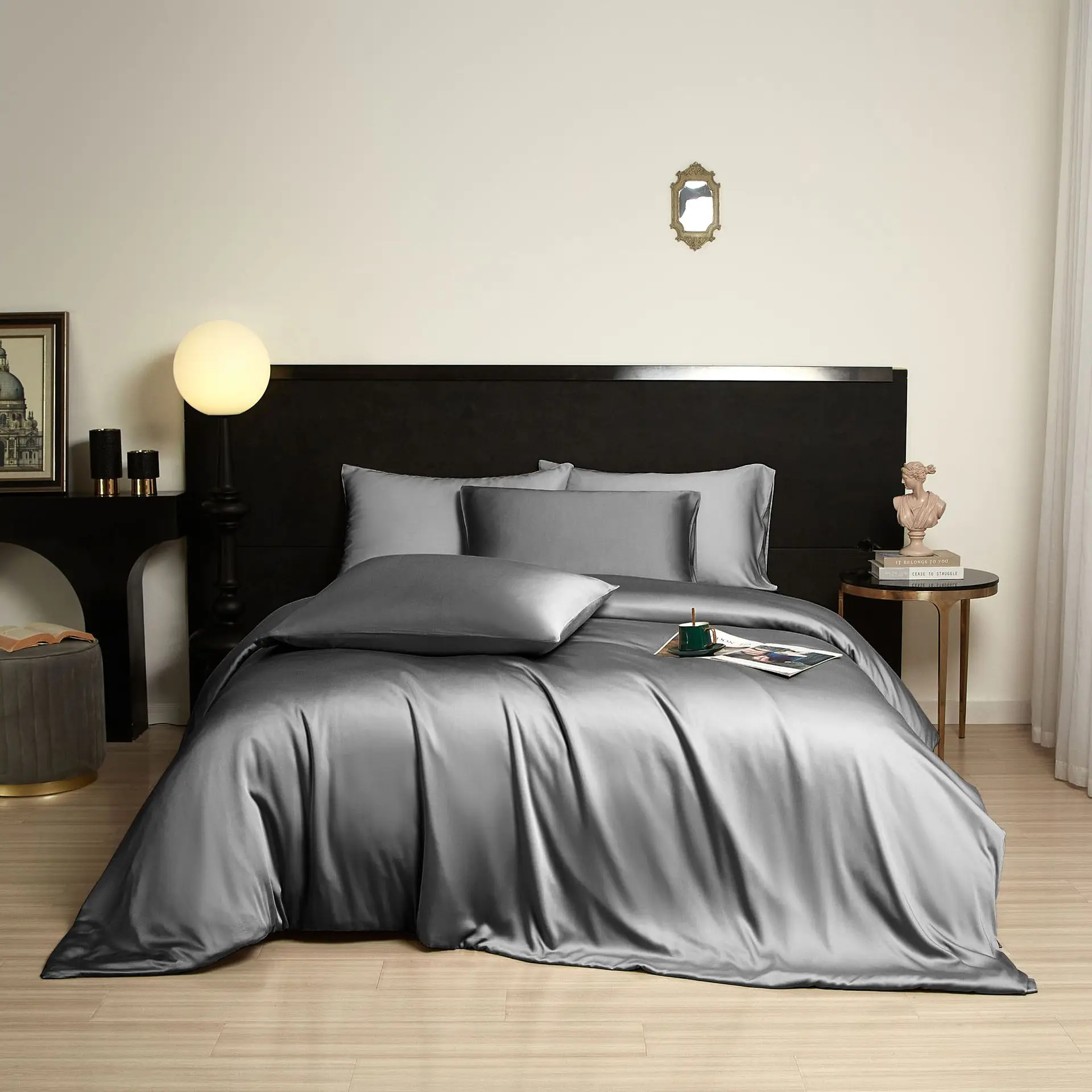 100% Bamboo Woven Modern Solid Color Bedding Set Flat Sheet Fitted Sheet Pillowcases 300tc Thread Count Wedding Four-piece Kit