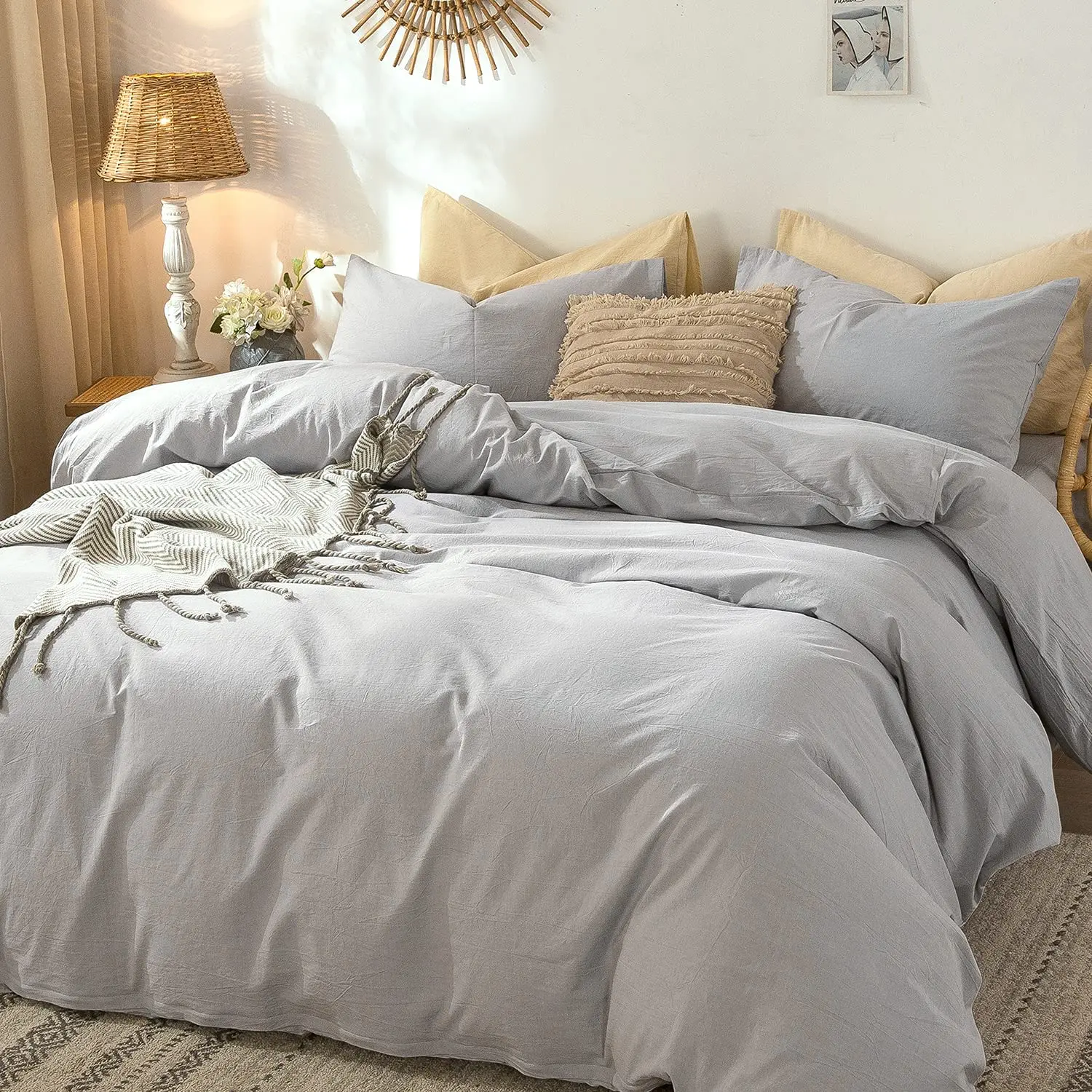 Custom Modern Style Plain Dyed Bedding Duvet Cover Set 100% Washed Cotton Linen Breathable Durable Soft Comfy Quilt Cover
