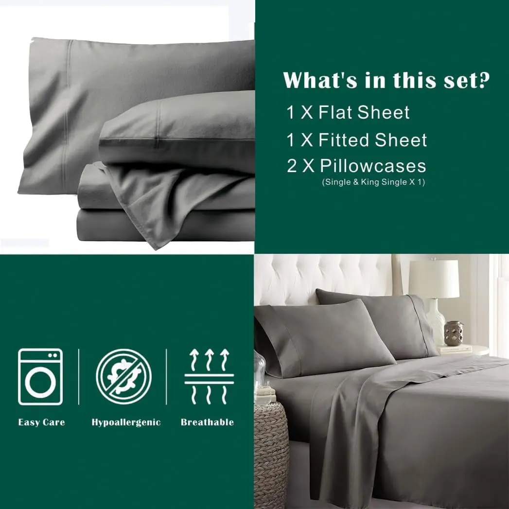 4 Piece Bed Sheet Set,Deep Pocket Flat Fitted Sheet, Queen Size