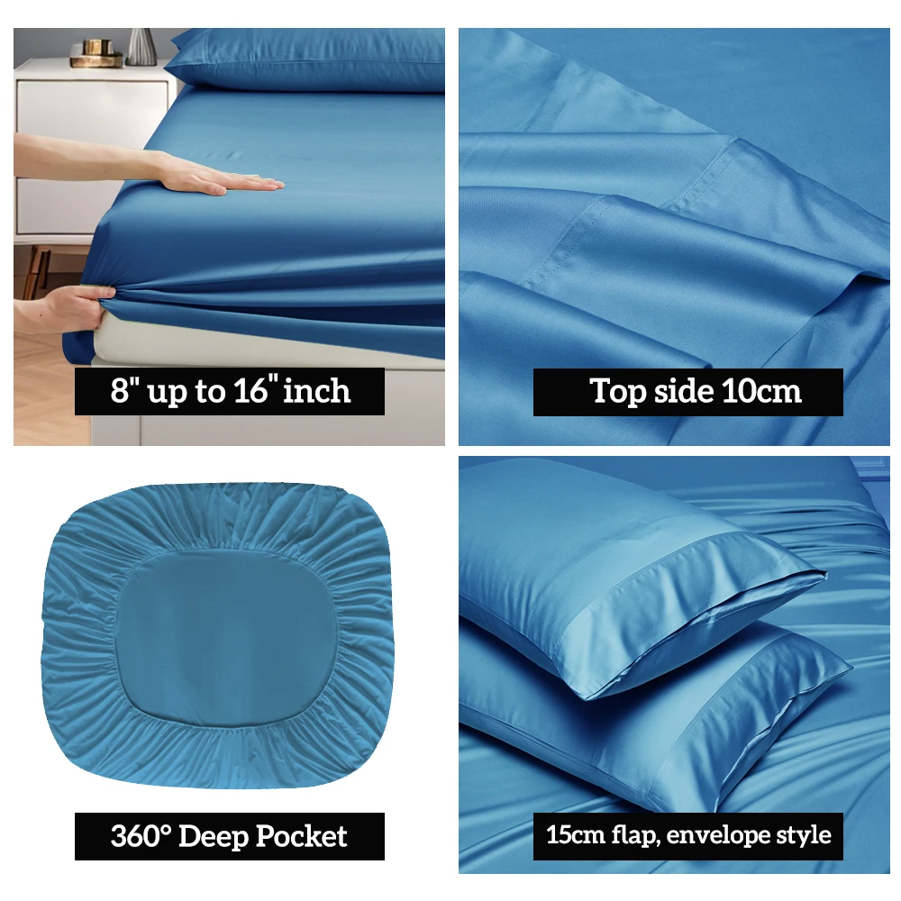 100% Bamboo Fiber Woven Modern Solid Color Bedding Set Super King Size Includes Flat Bed Sheet Fitted Duvet Cover