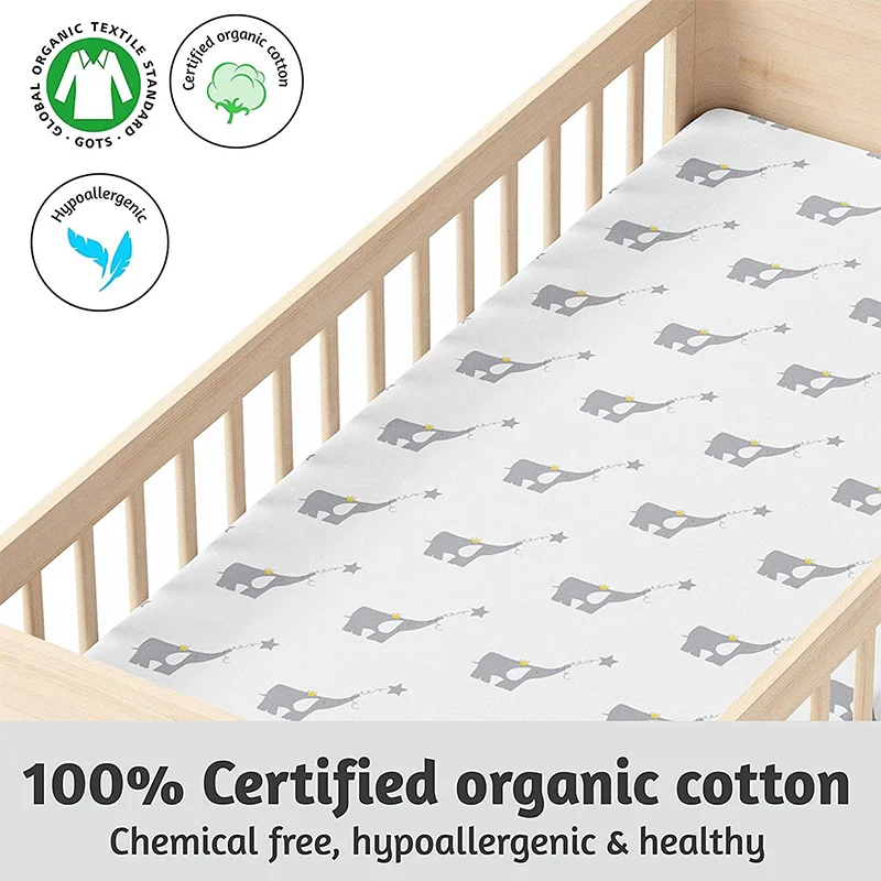 Hot Sale Custom Printing Soft Kids Baby 100% Organic Nature Cotton Pillowcase Crib Bedding Sheet Set