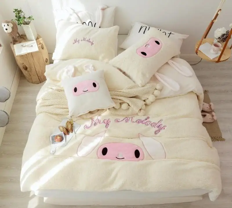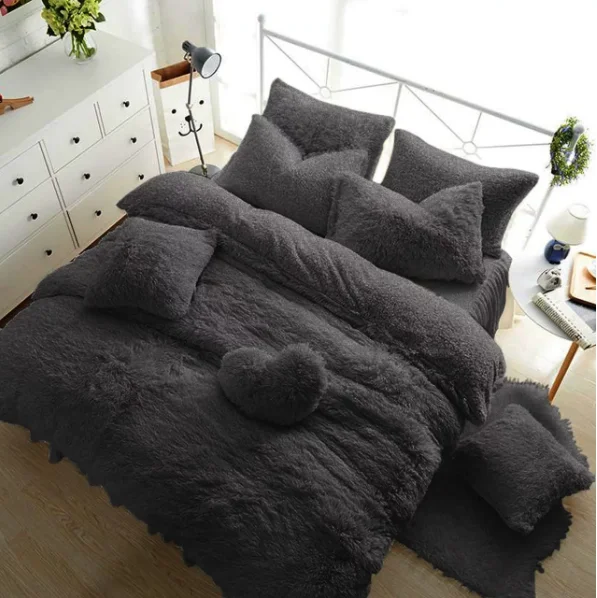 Factory Supply Kids Women Plain Fluffy Teddy Fleece Duvet Cover Bedsheet Bedding Set