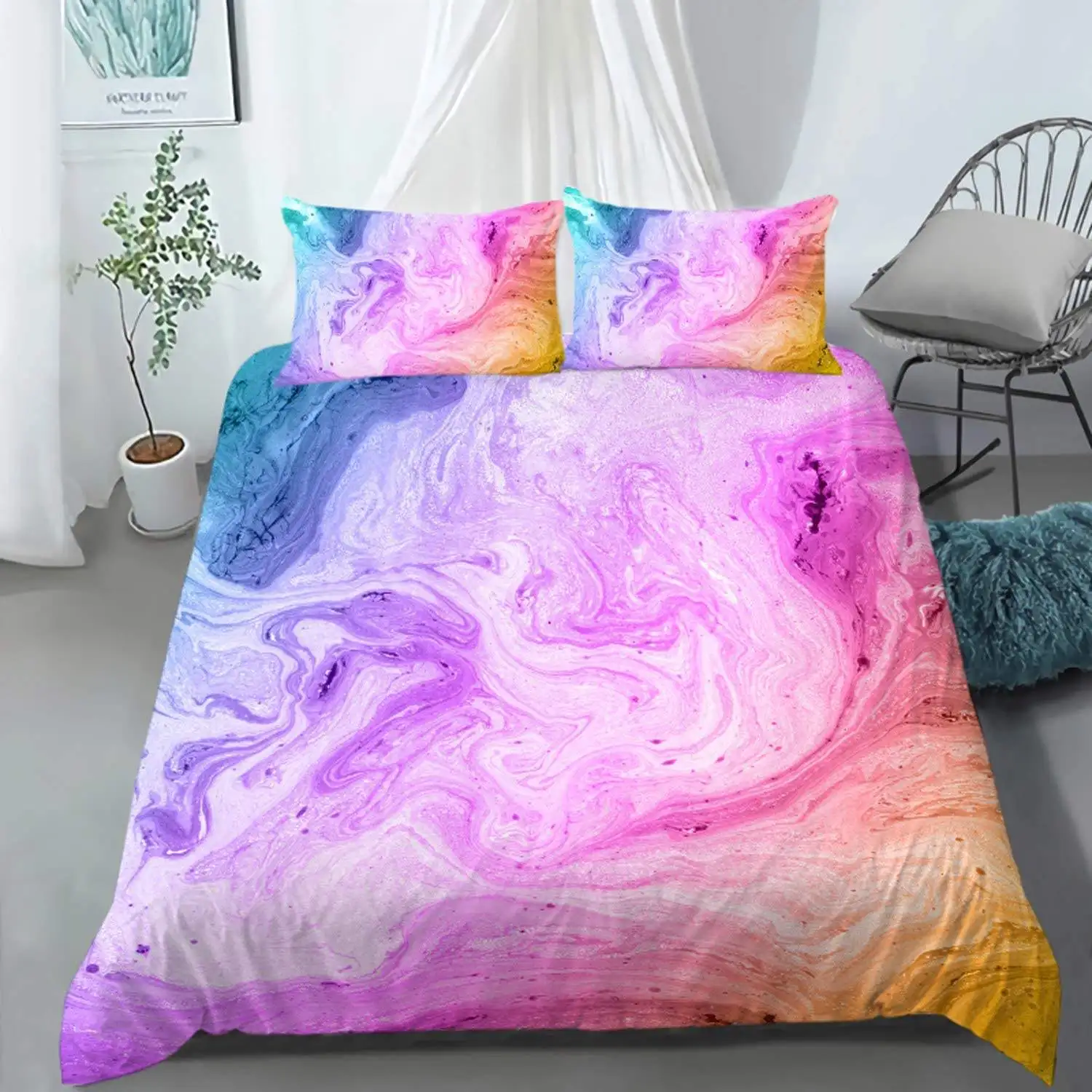 Teen Girls Superior Personalised Comforter Colorful Bohemian Tie Dye Duvet Cover Set for Bedroom