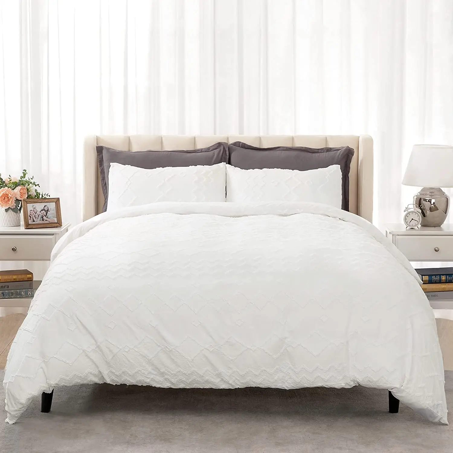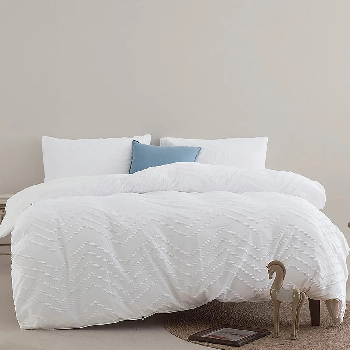 Factory Customize Boho White 3 Pieces Embroidery Shabby Chic Washed Microfiber Home Bedding Duvet Covers