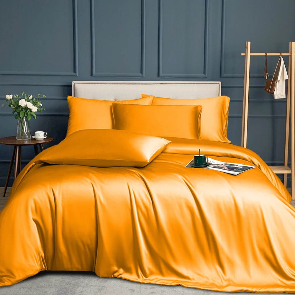 100% Bamboo Fiber Woven Modern Solid Color Bedding Set Super King Size Includes Flat Bed Sheet Fitted Duvet Cover