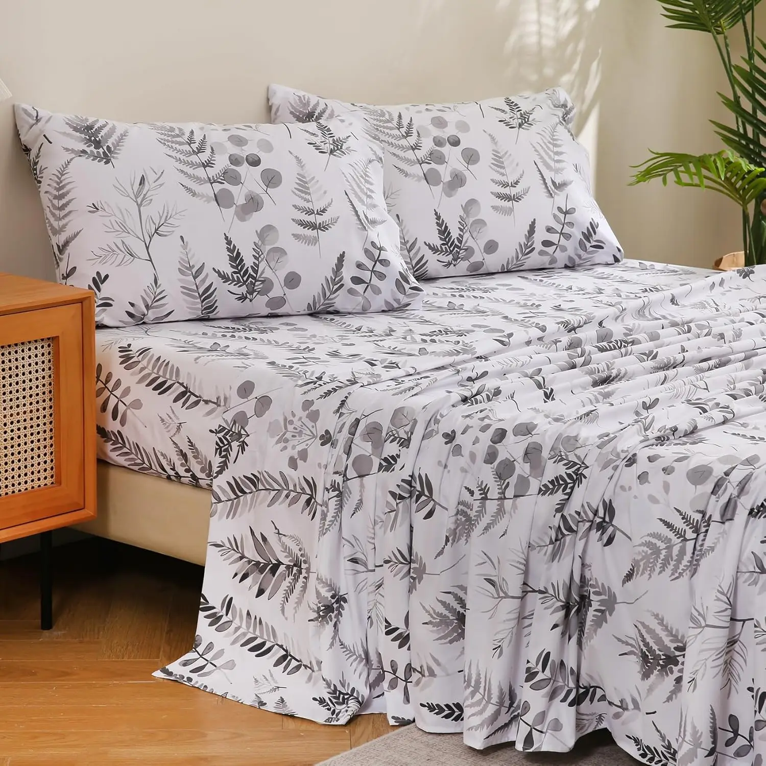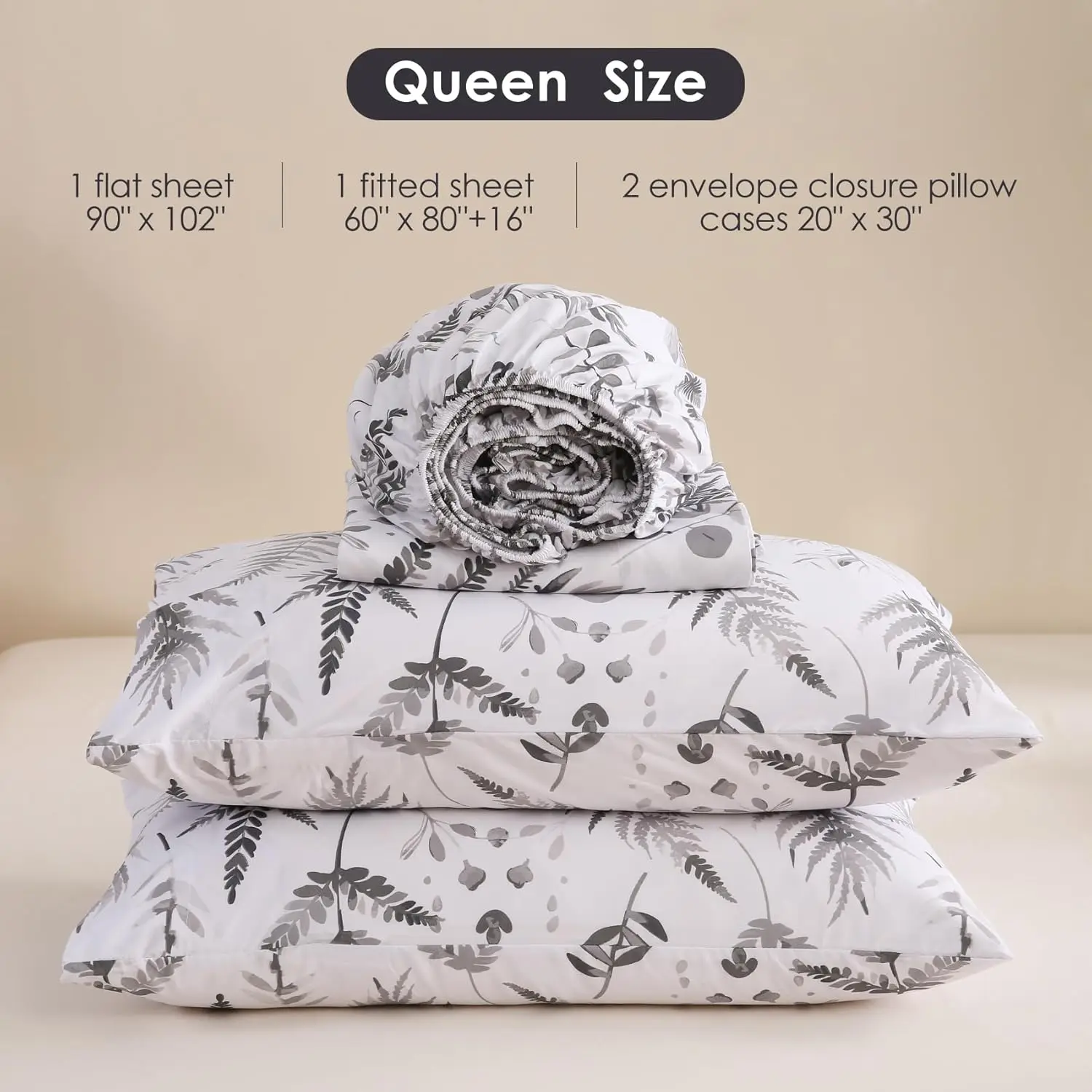 Floral Sheet Set,Printed Microfiber Bed Sheets Deep Pocket