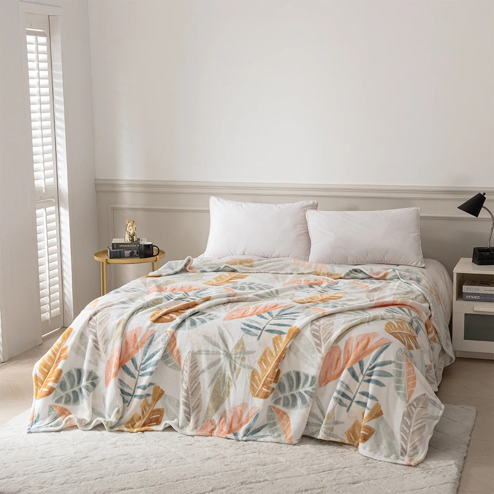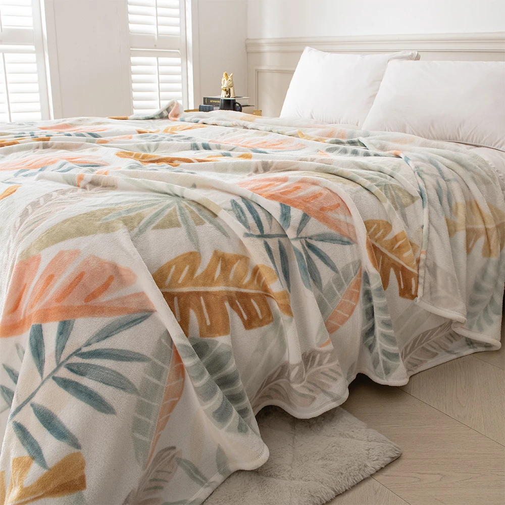 Microfiber All Season Blankets Weighted Flannel Blanket Botanical Design Bedding